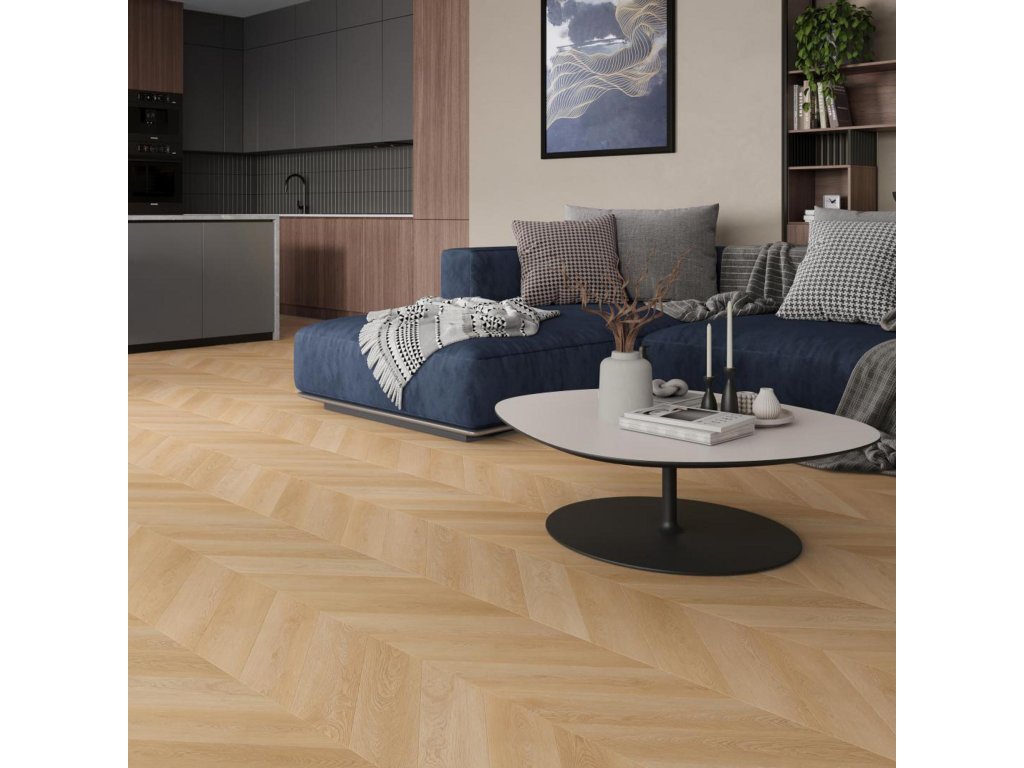 Kompozitná podlaha Afirmax Legnar CHEVRON sa vďaka minerálnemu jadru radí medzi SPC podlahy, čo dovoľuje podlahu použiť aj do náročných priestorov s priamym slnečným žiarením a garantuje 100% vodeodolnosť a antistatickosť.