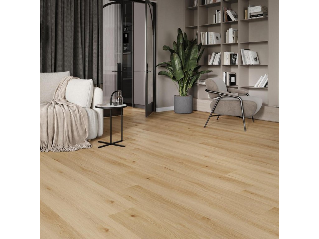 Materiál podlahy je 100 % vodeodolný, čo z nej robí ideálne riešenie aj do priestorov s vyššou vlhkosťou. Vysoká rozmerová stálosť zabezpečuje, že podlaha si zachová svoj tvar aj pri zmenách teploty či vlhkosti. Vďaka vynikajúcim akustickým vlastnostiam je tichá a komfortná pri chôdzi, a preto je vhodná aj do veľkých otvorených priestorov a na podlahové vykurovanie.