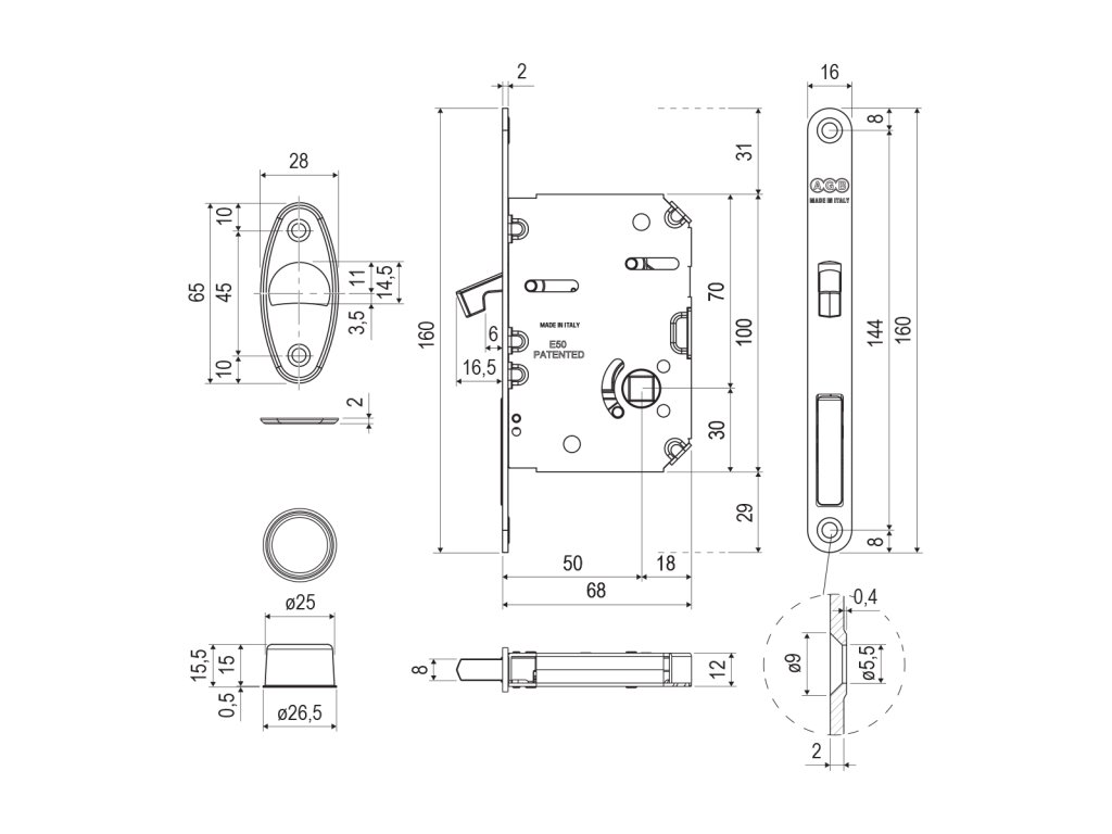 Scivola Tre Class je patentovaný zámok na posuvné dvere s minimalistickým dizajnom a vyťahovacou pákou, ktorá sa vyznačuje skvelou priľnavosťou. Skrytá vyťahovacia páka nahrádza ťah prstom a v dôsledku toho nie je potrebné vŕtať otvor napr. pre madielko do čela dverí. Protiplech je súčasťou balenia. Rozmery: Dĺžka: 160 mmŠírka: 16 mm Hrúbka: 2 mm Dormas: 50 mm (vzdialenosť osi kľučky od lišty zámku)Dodatočné parametre