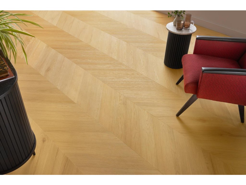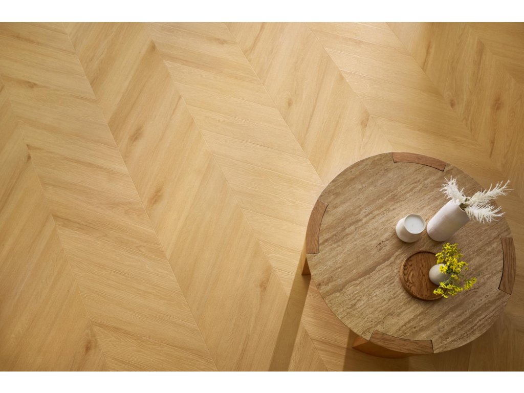 Kolekcia Arbiton Amaron Chevron je prémiová kompozitná podlaha s minerálnym jadrom, ktorá spája elegantný vzor chevron s vysokou odolnosťou a autentickým vzhľadom dreva.