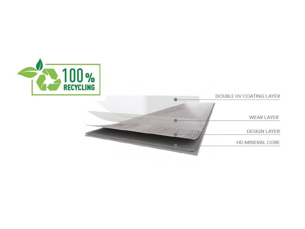 Podlaha je úplne vodoodolná, čo umožňuje jej použitie aj v kuchyniach, predsieňach či kúpeľniach, a zároveň je vhodná pre podlahové vykurovanie. Povrch lamiel verne imituje prirodzenú kresbu dreva so synchronickou štruktúrou a mikro 4-V drážkou po obvode, vďaka čomu pôsobí veľmi autenticky.