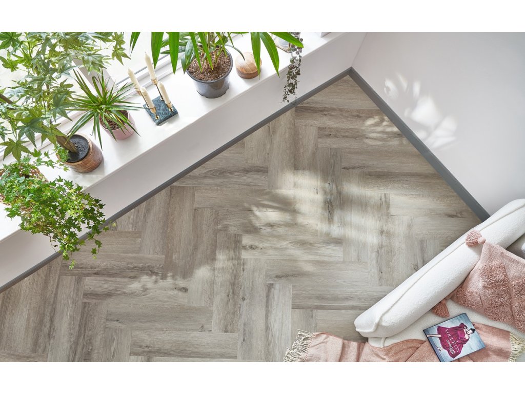 Kolekcia Amaron Herringbone predstavuje moderné podlahy s minerálnym jadrom vo vzore rybej kosti, ktoré spájajú eleganciu tradičného parketu s praktickosťou súčasných materiálov. Vďaka systému klikového spoja 5Gi sa montujú jednoducho a bez lepenia, pričom vytvárajú efekt luxusnej drevenej podlahy s presným geometrickým vzorom. Lamely s rozmerom 592 × 148 mm a hrúbkou 5 mm majú odolnú nášľapnú vrstvu 0,55 mm, čo zaručuje vysokú triedu záťaže 23/33/42, vhodnú nielen pre domácnosti, ale aj komerčné priestory.