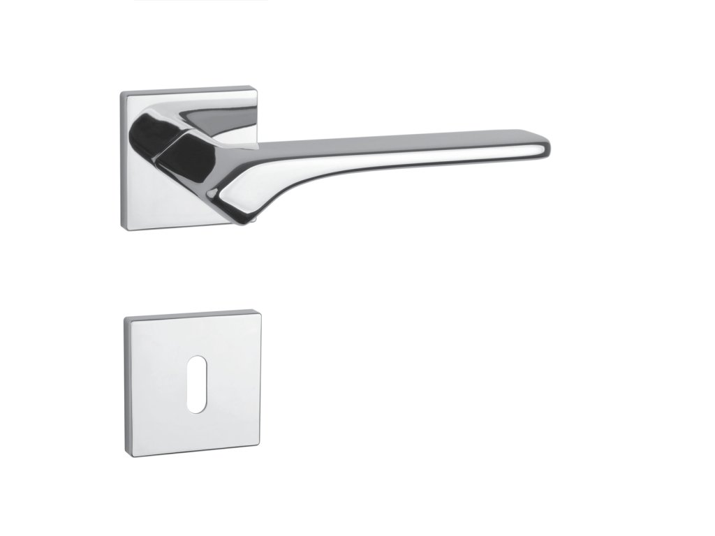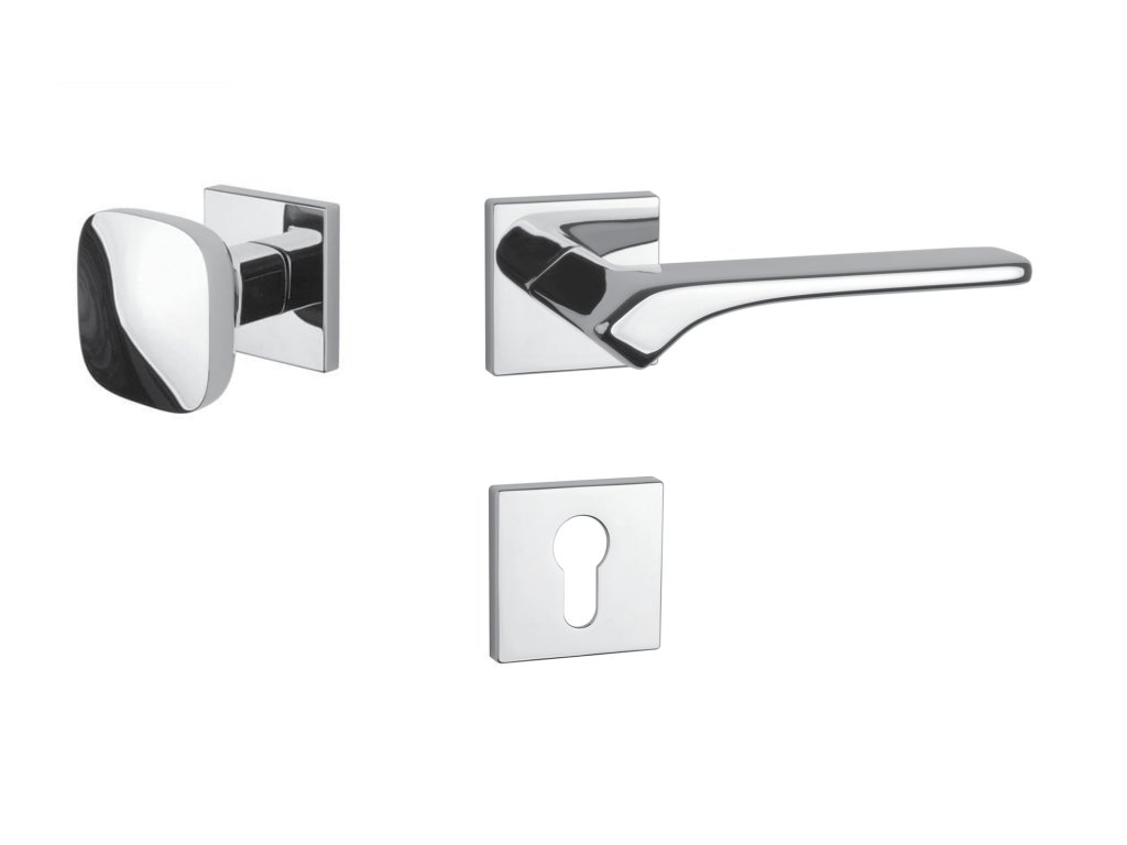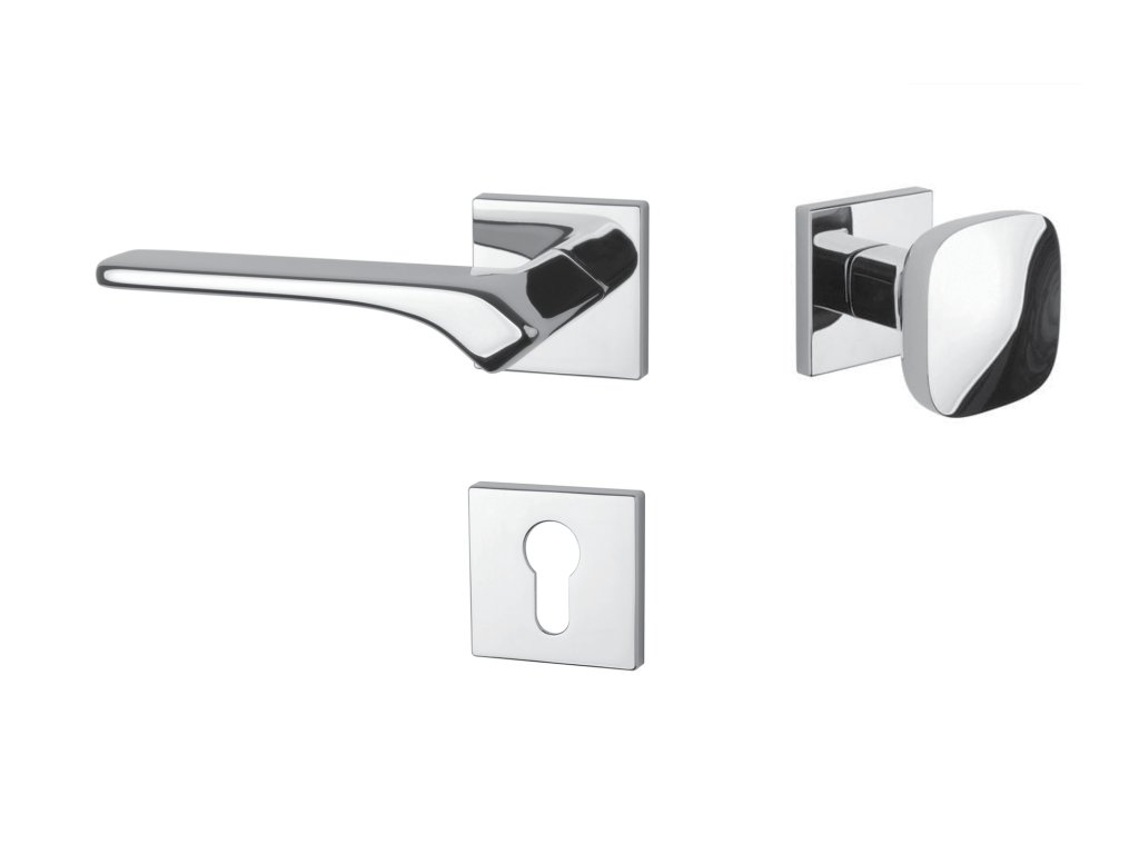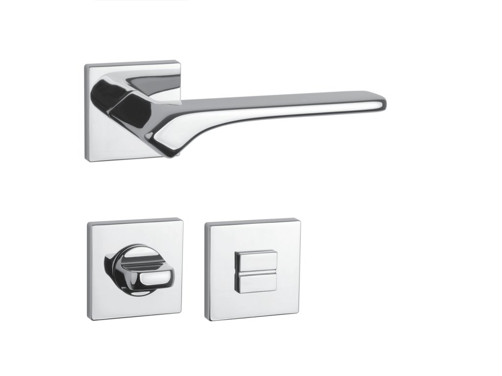 Rozetová kľučka na interiérové dvere s hranatou rozetou je vyrobená z materiálov vysokej kvality- zamak a je povrchovo upravená