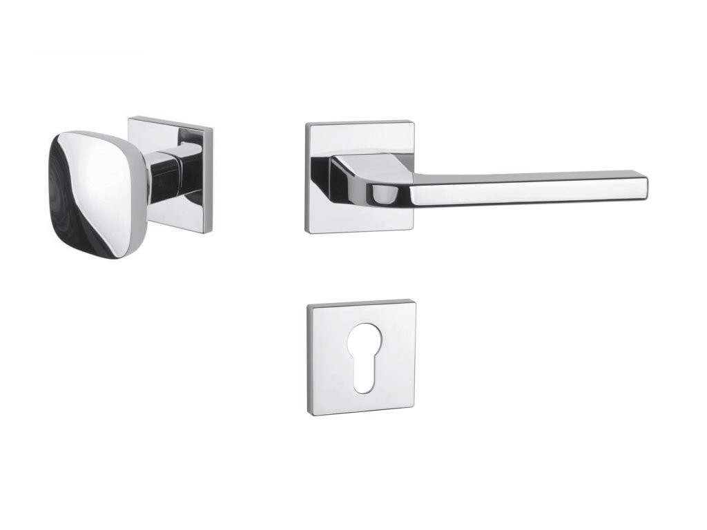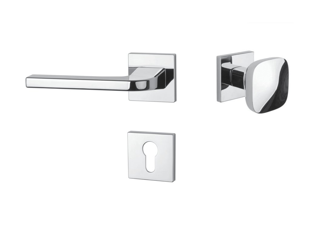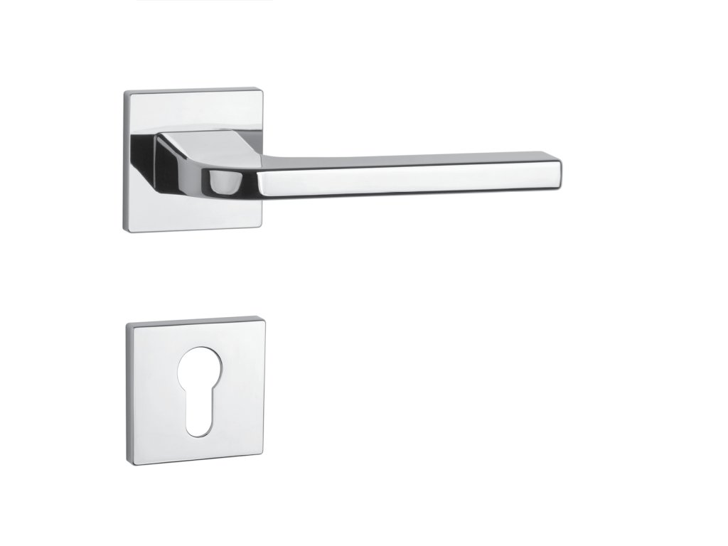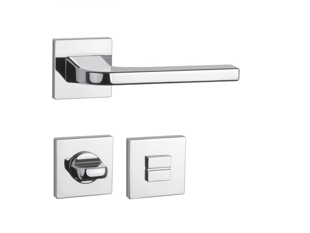 Rozetová kľučka na interiérové dvere s hranatou rozetou je vyrobená z materiálov vysokej kvality- zamak a je povrchovo upravená