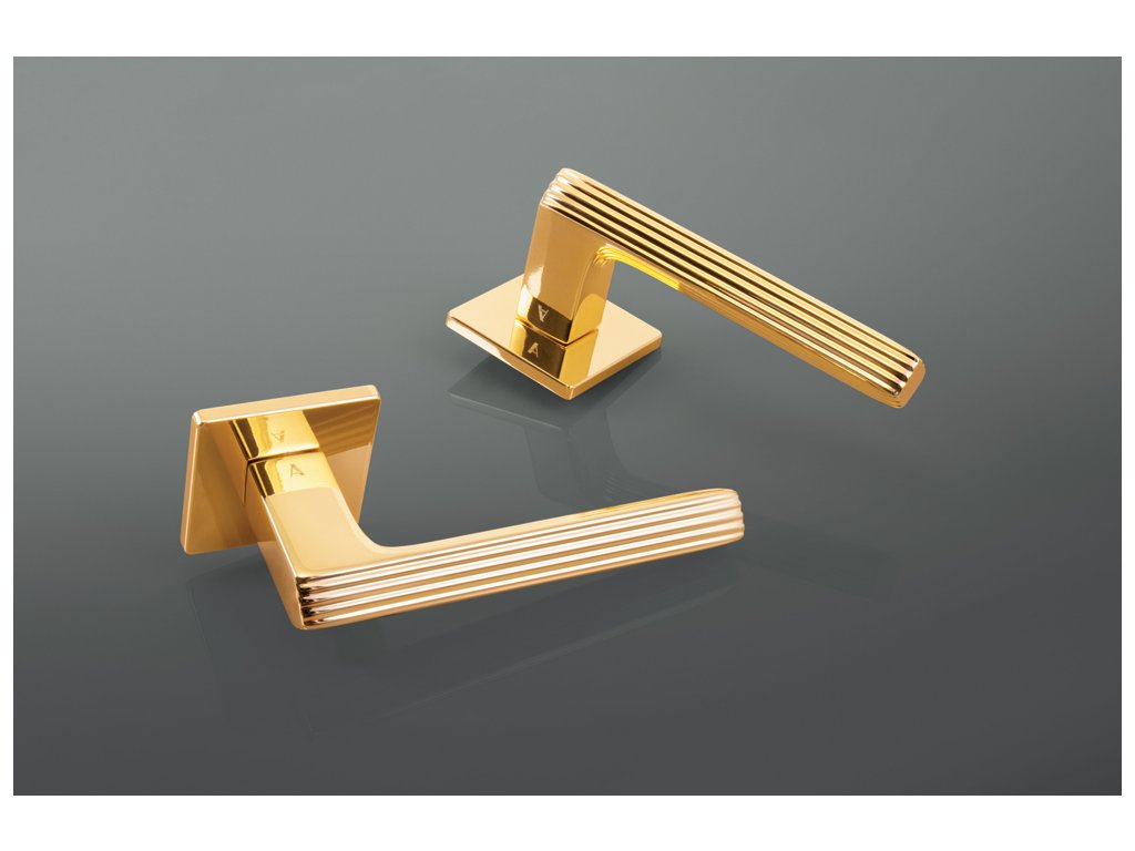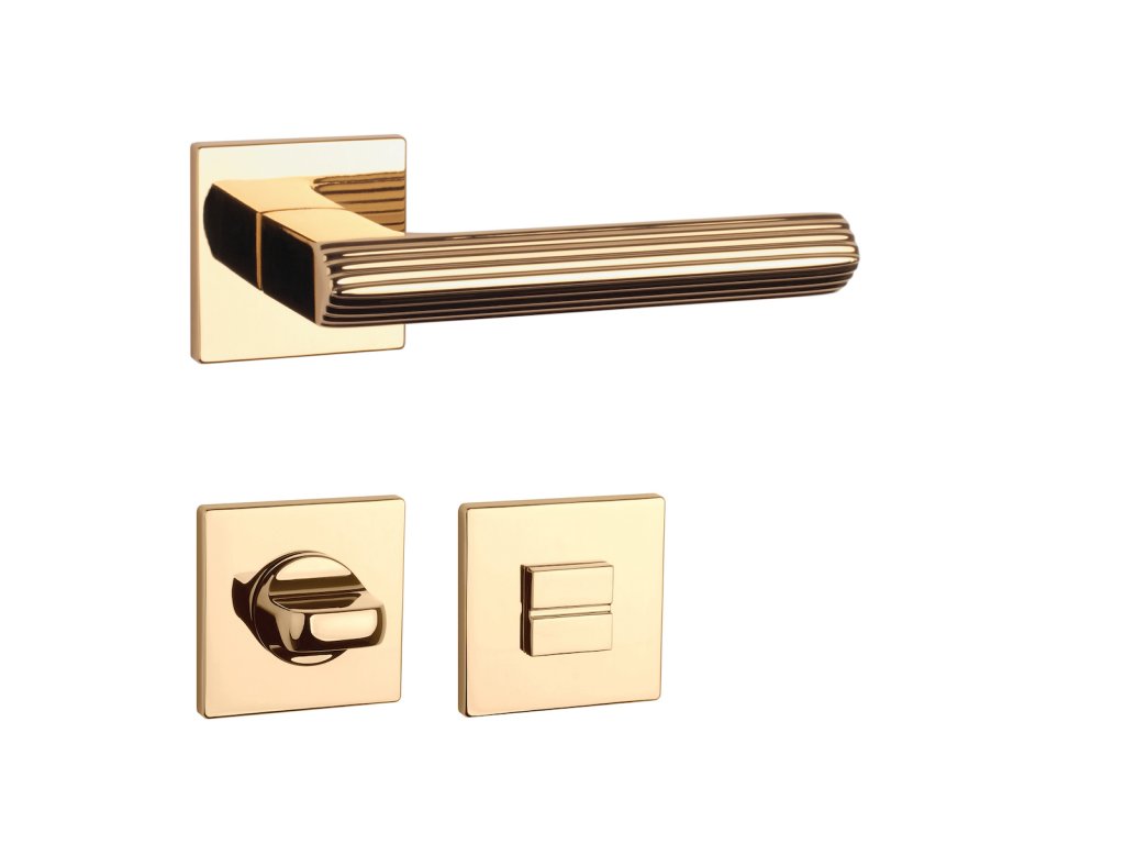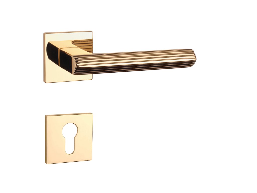 Rozetová kľučka na interiérové dvere s hranatou rozetou je vyrobená z materiálov vysokej kvality- zamak a je povrchovo upravená