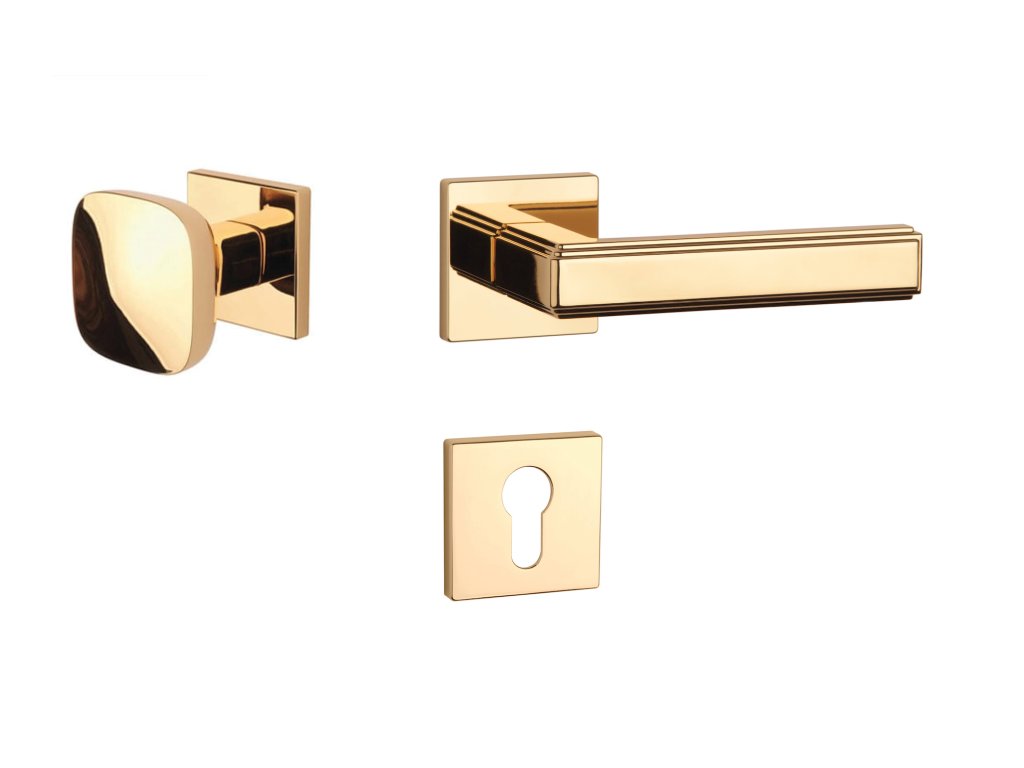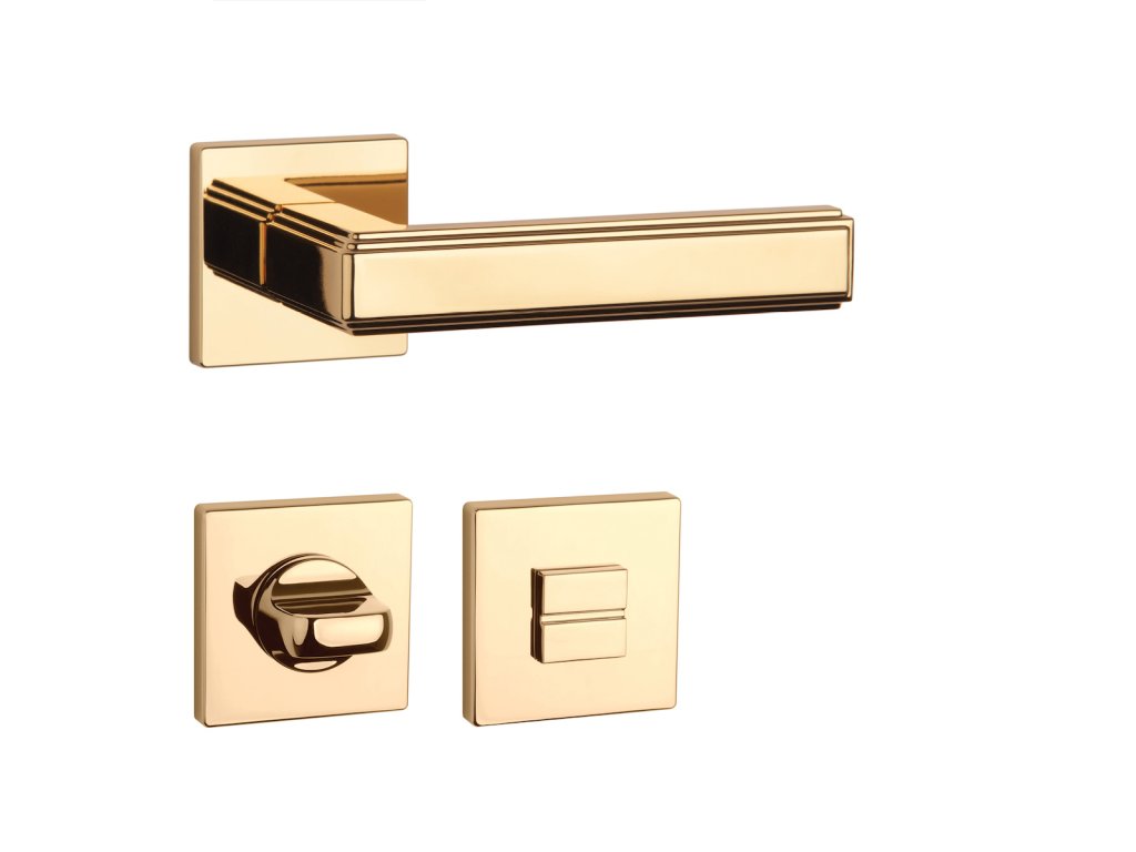 Rozetová kľučka na interiérové dvere s hranatou rozetou je vyrobená z materiálov vysokej kvality- zamak a je povrchovo upravená