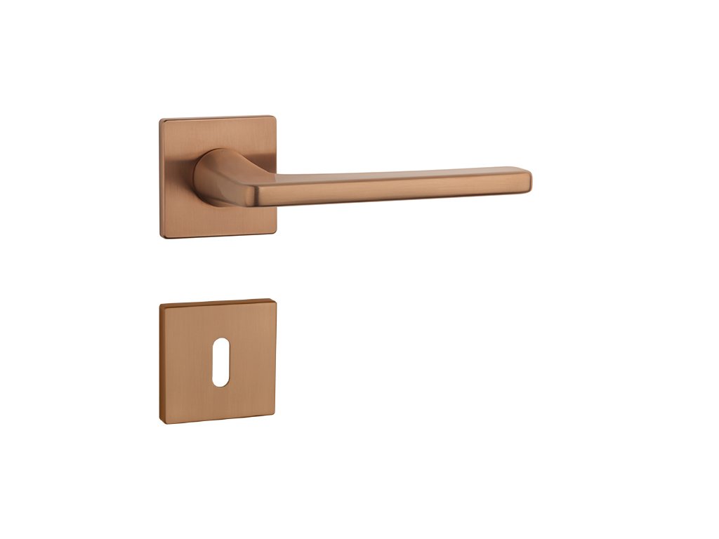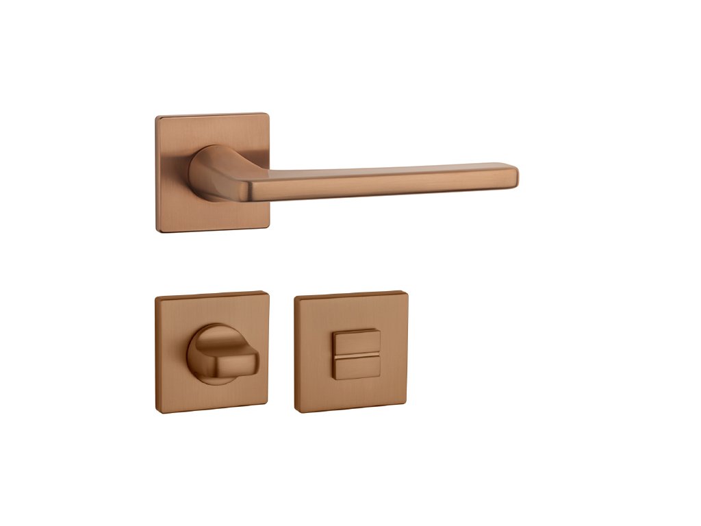 Rozetová kľučka na interiérové dvere s hranatou rozetou je vyrobená z materiálov vysokej kvality- zamak a je povrchovo upravená