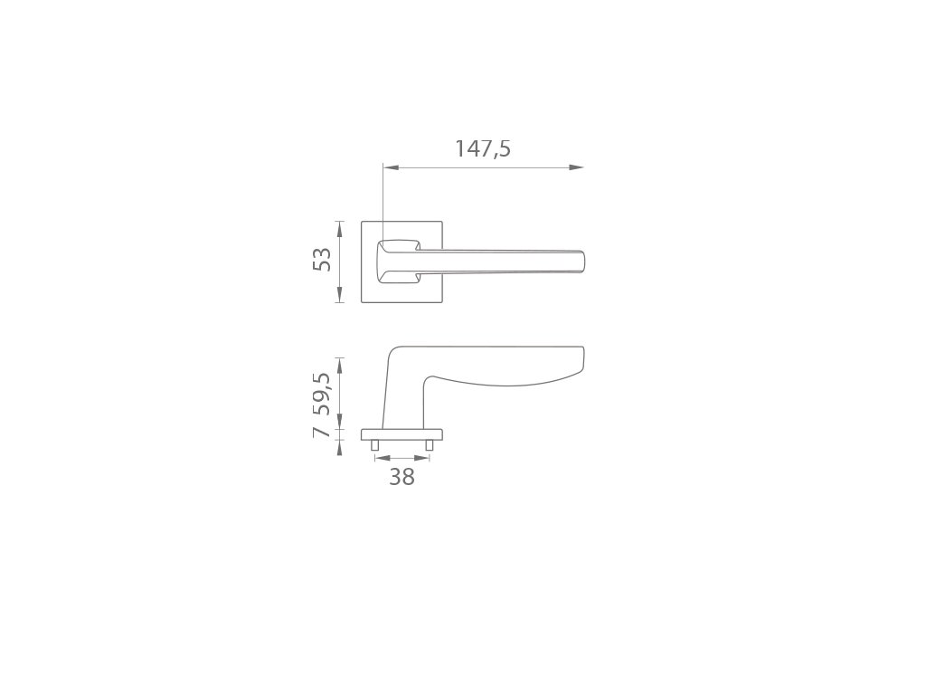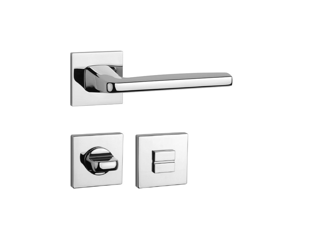 Rozetová kľučka na interiérové dvere s hranatou rozetou je vyrobená z materiálov vysokej kvality- zamak a je povrchovo upravená