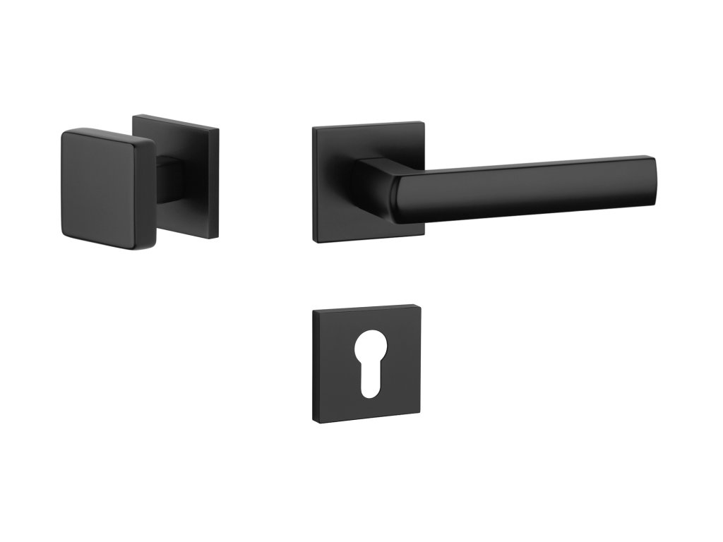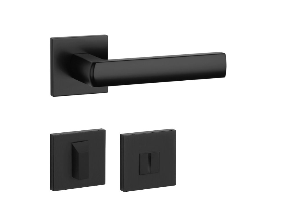 Rozetová kľučka na interiérové dvere s hranatou rozetou je vyrobená z materiálov vysokej kvality- zamak a je povrchovo upravená