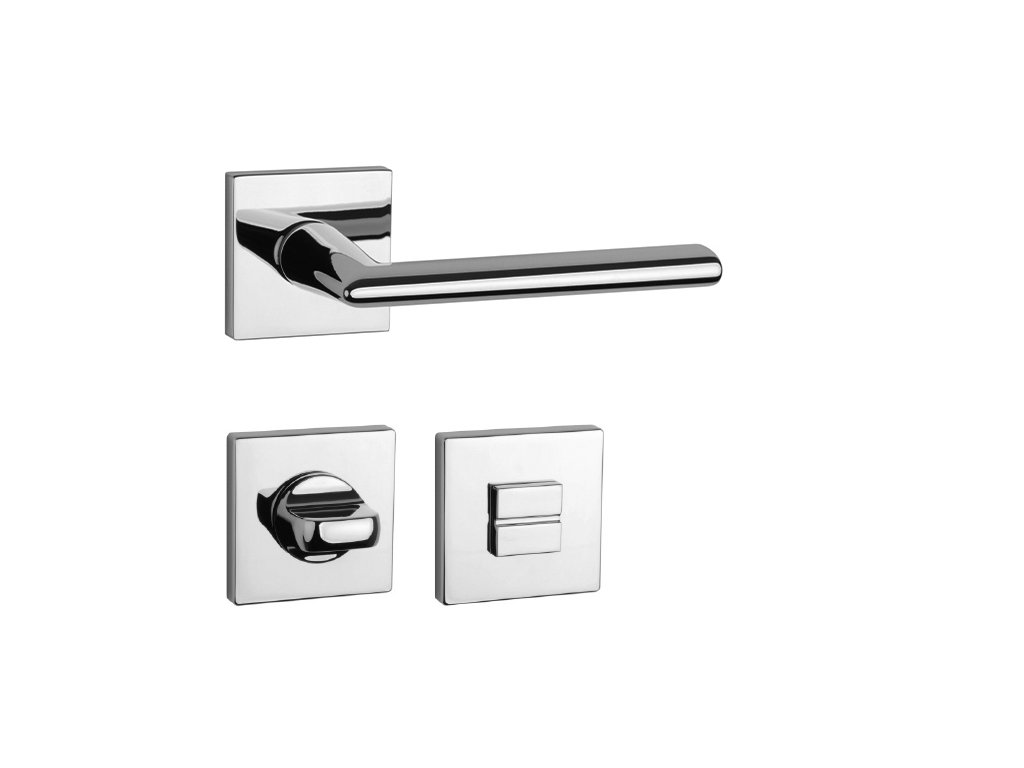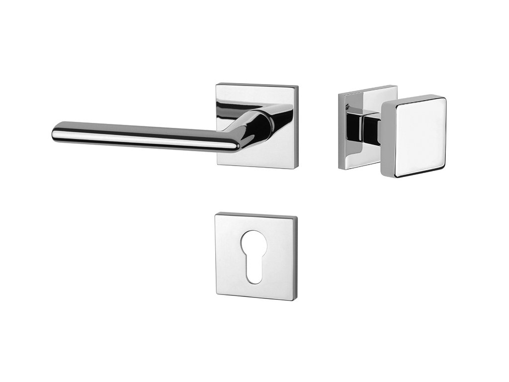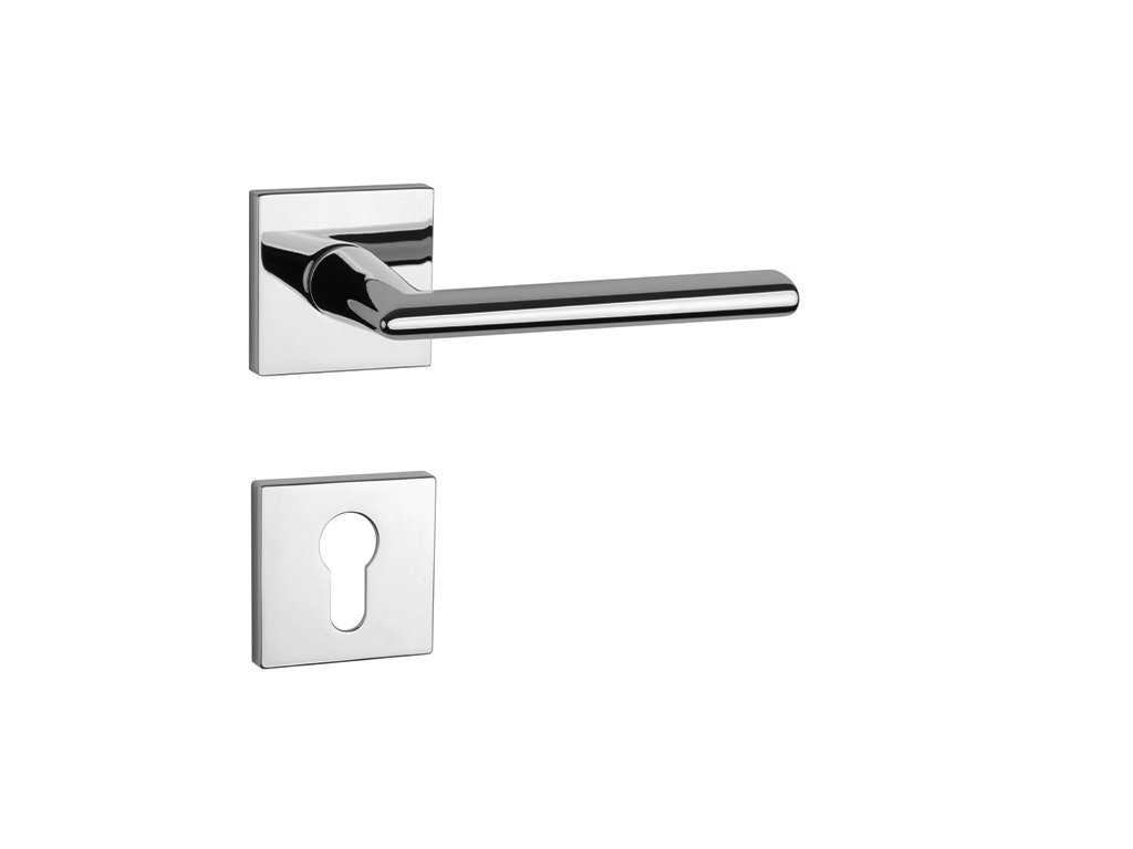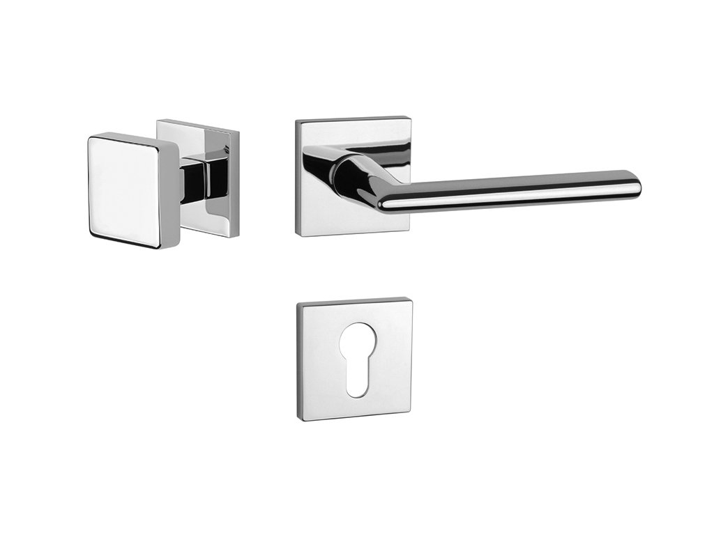 Rozetová kľučka na interiérové dvere s hranatou rozetou je vyrobená z materiálov vysokej kvality- zamak a je povrchovo upravená