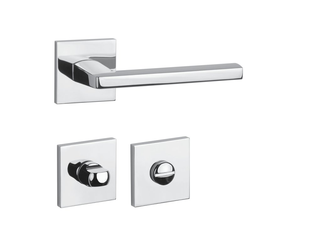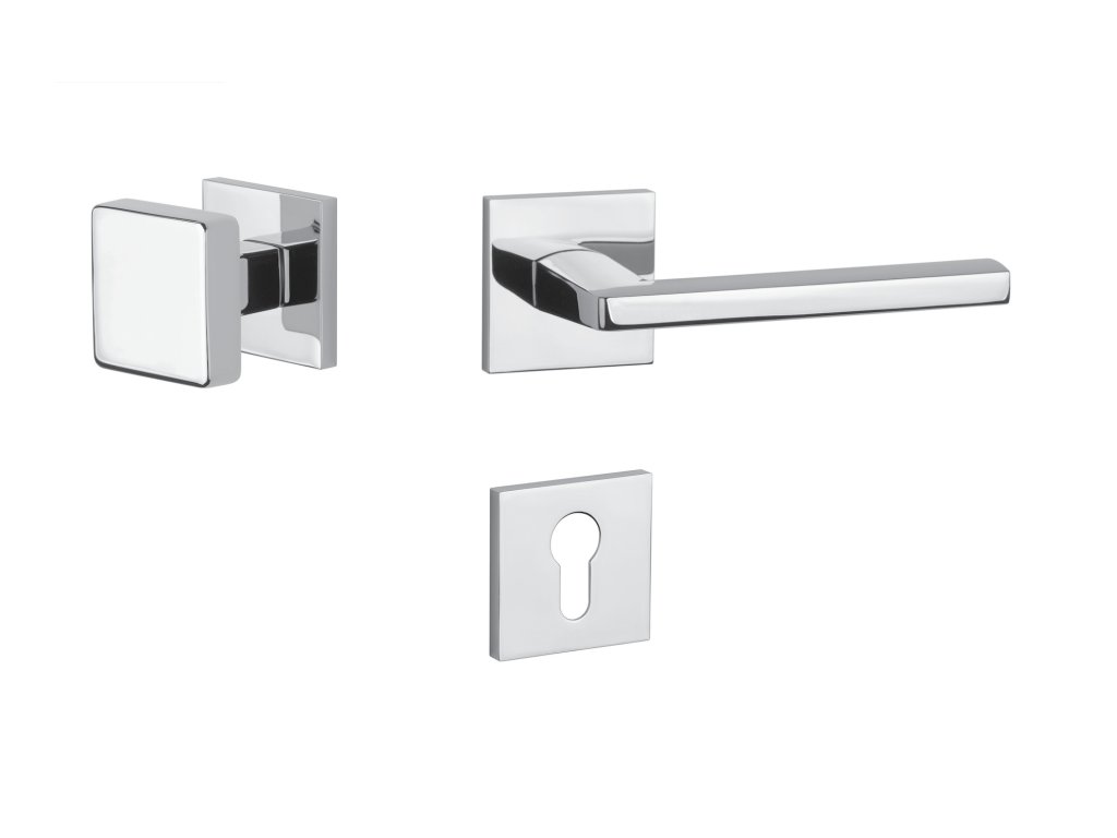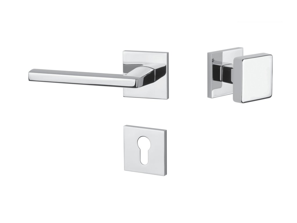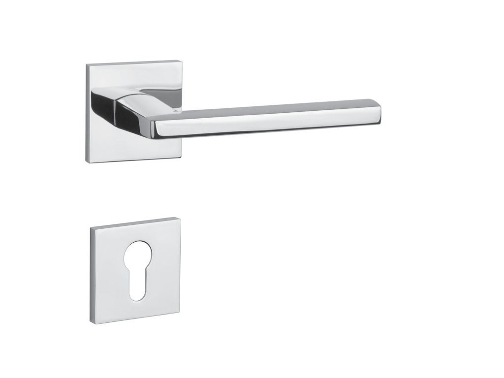 Rozetová kľučka na interiérové dvere s hranatou rozetou je vyrobená z materiálov vysokej kvality- zamak a je povrchovo upravená