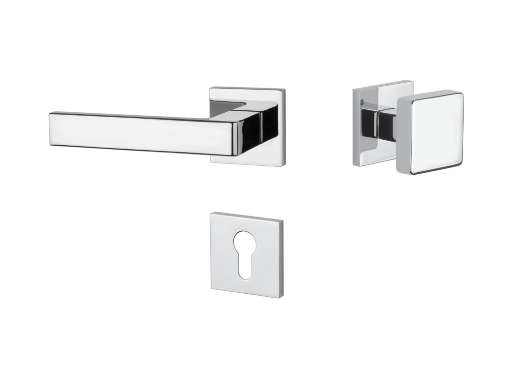 Rozetová kľučka na interiérové dvere s hranatou rozetou je vyrobená z materiálov vysokej kvality- zamak a je povrchovo upravená