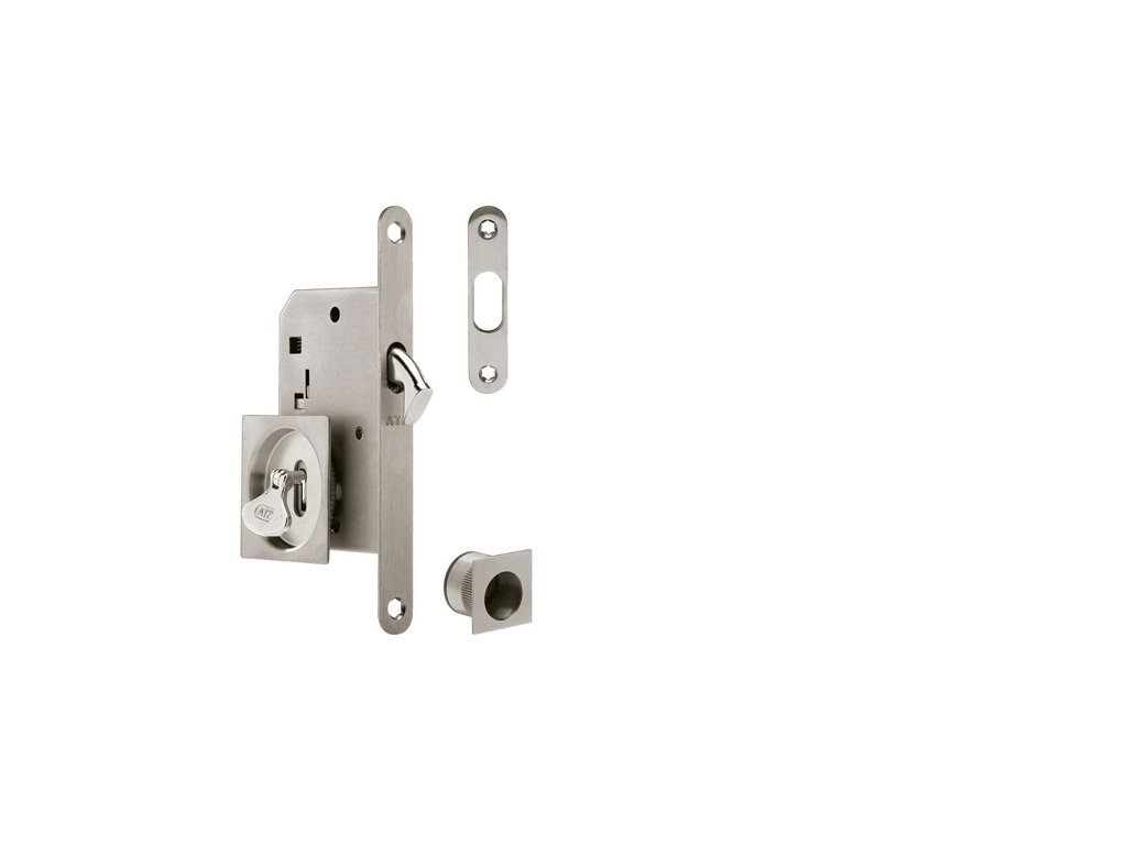 Hranatý set na posuvné dvere s otvorom pre interiérový kľúč (BB) s rozmermi čela zámku v dĺžke 160 mm, šírke 18 mm, hrúbke 2 mm. Rozteč (vzdialenosť medzi otvorom na kľučku a vložkou/kľúčom) - 72 mm , zádlab - 65 mm a dormas (vzdialenosť osi kľučky od lišty zámku) - 50 mm. Set obsahuje: zámok ATZ - 1175, pár mušlí - ATZ - 3925, madielko - ATZ - 3919Dodatočné parametre