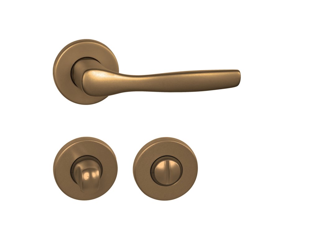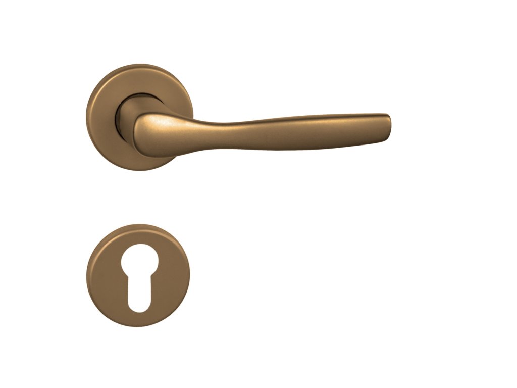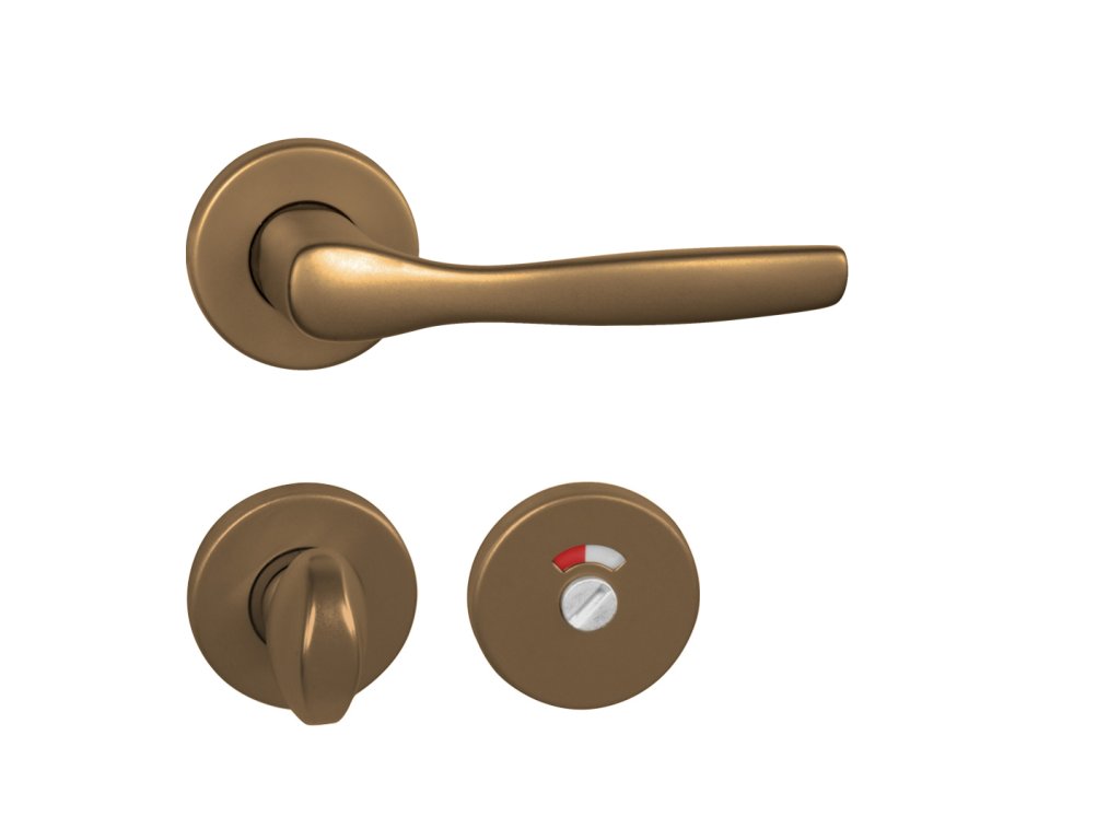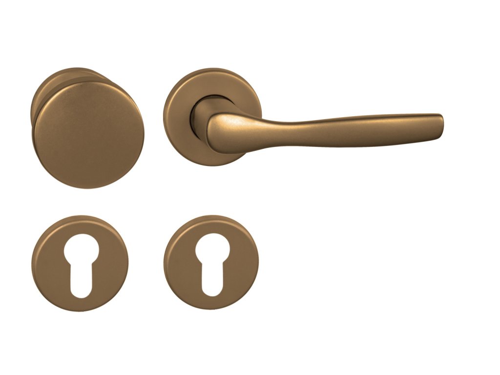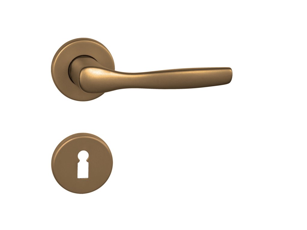 Rozetová kľučka na interiérové dvere s okrúhlou rozetou je vyrobená z hliníka a je povrchovo upravená.Rozeta má priemer 50 mm a hrúbku 8 mm.
