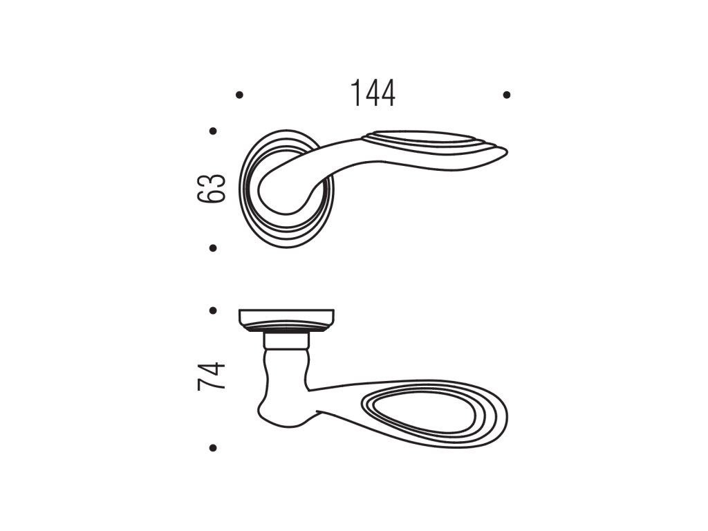 Oválna rozeta má rozmery 63 × 50,5 mm a hrúbku 11 mm.
