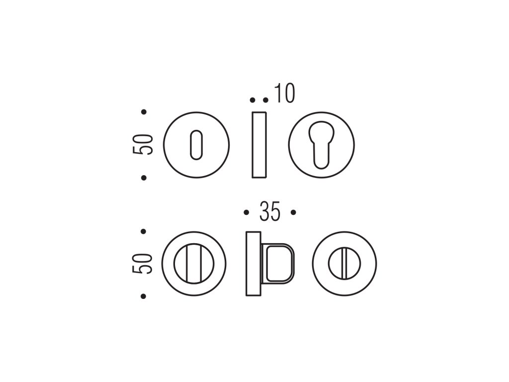 Okrúhla rozeta má priemer 50 mm a hrúbku 10 mm.