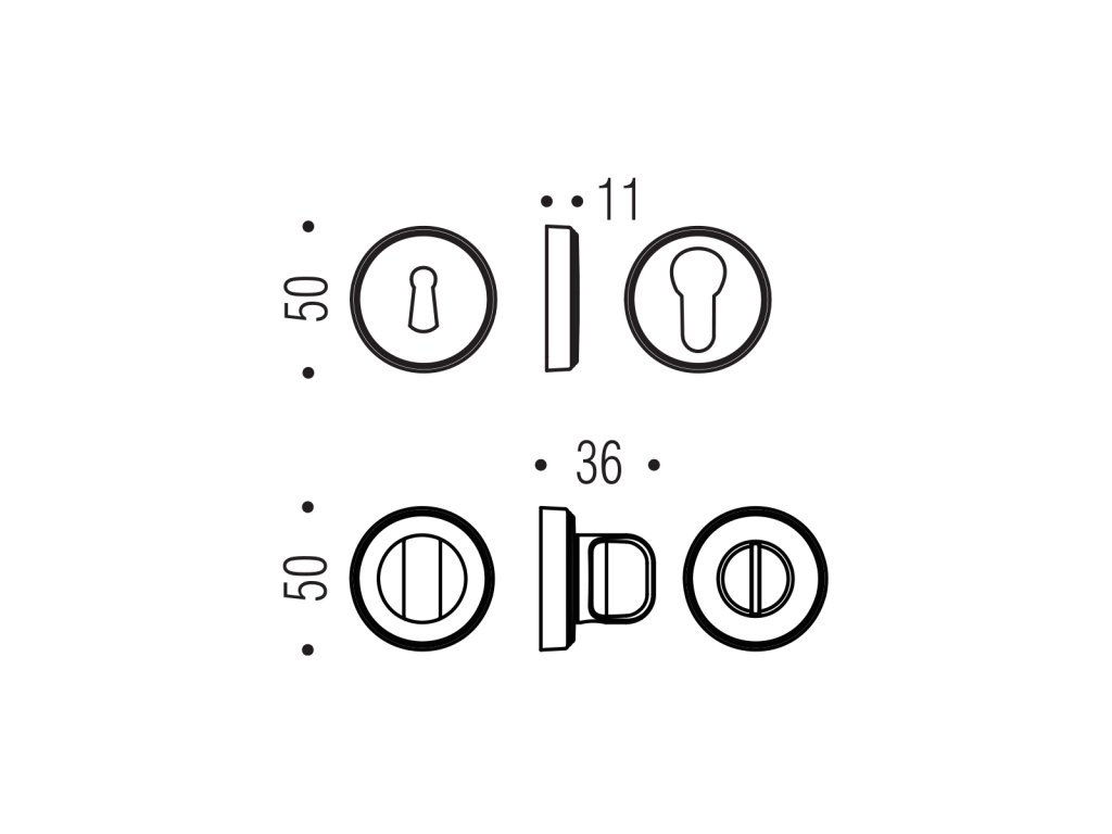 Okrúhla rozeta má priemer 50 mm a hrúbku 11 mm.