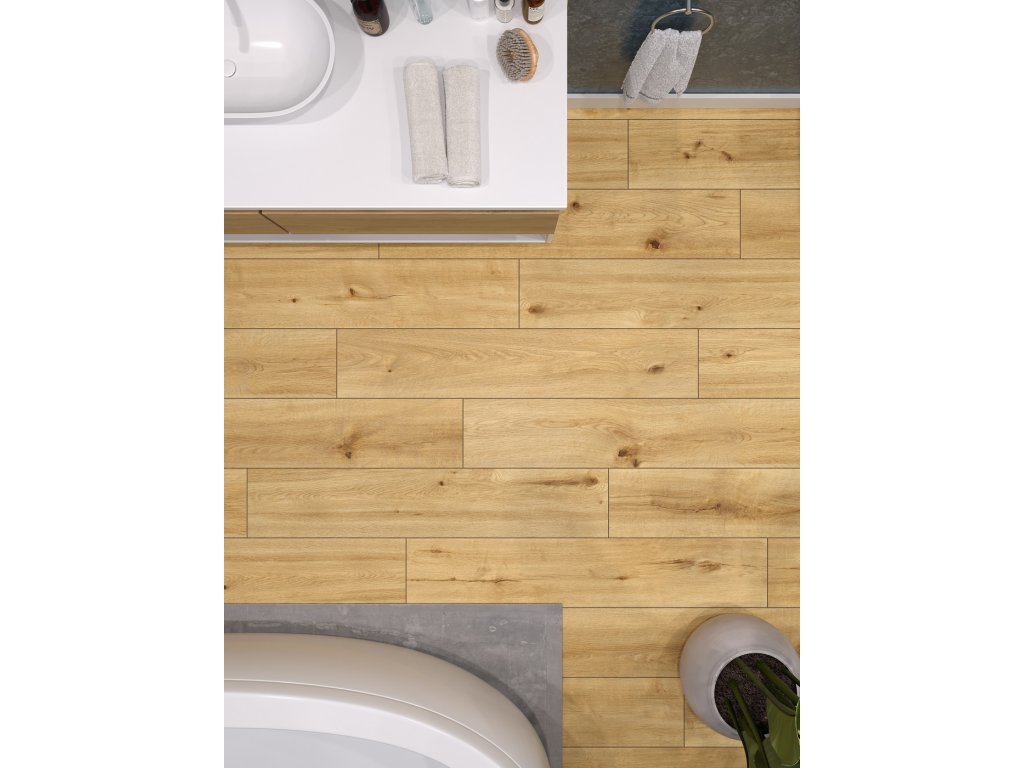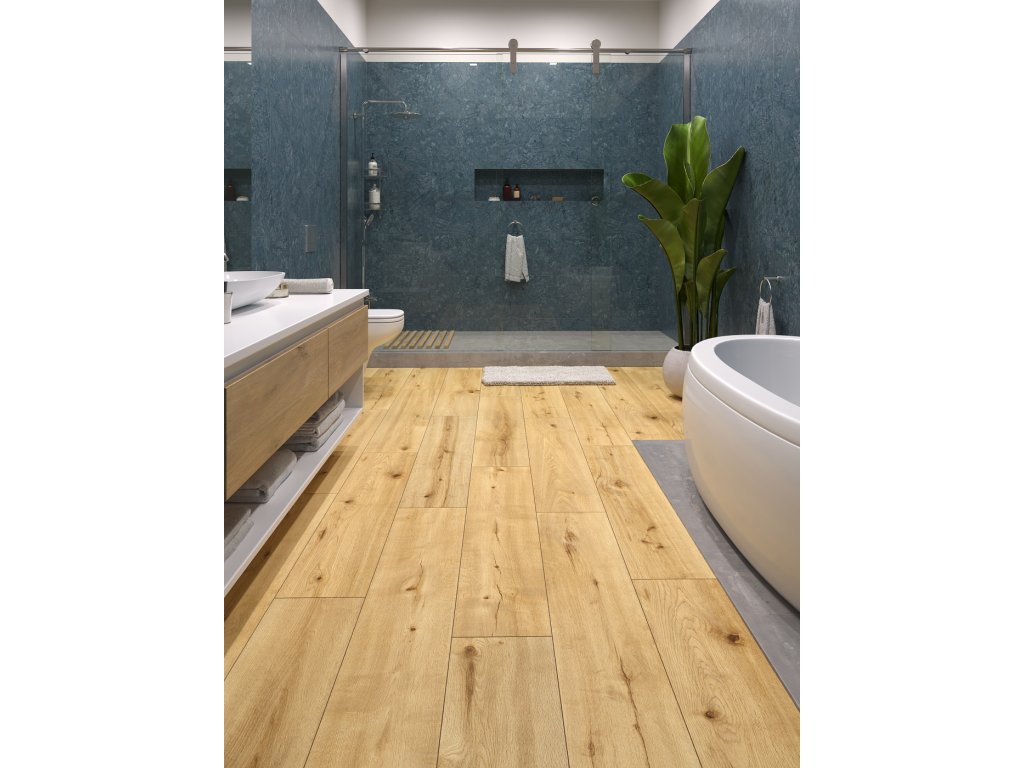 Podlaha je 100 % vodeodolná, rozmerovo stabilná a vhodná aj na inštaláciu na podlahové vykurovanie. Systém click umožňuje rýchlu a jednoduchú pokládku bez potreby lepenia. Rozmer lamely je 1290 × 246 mm, hrúbka 4 mm.