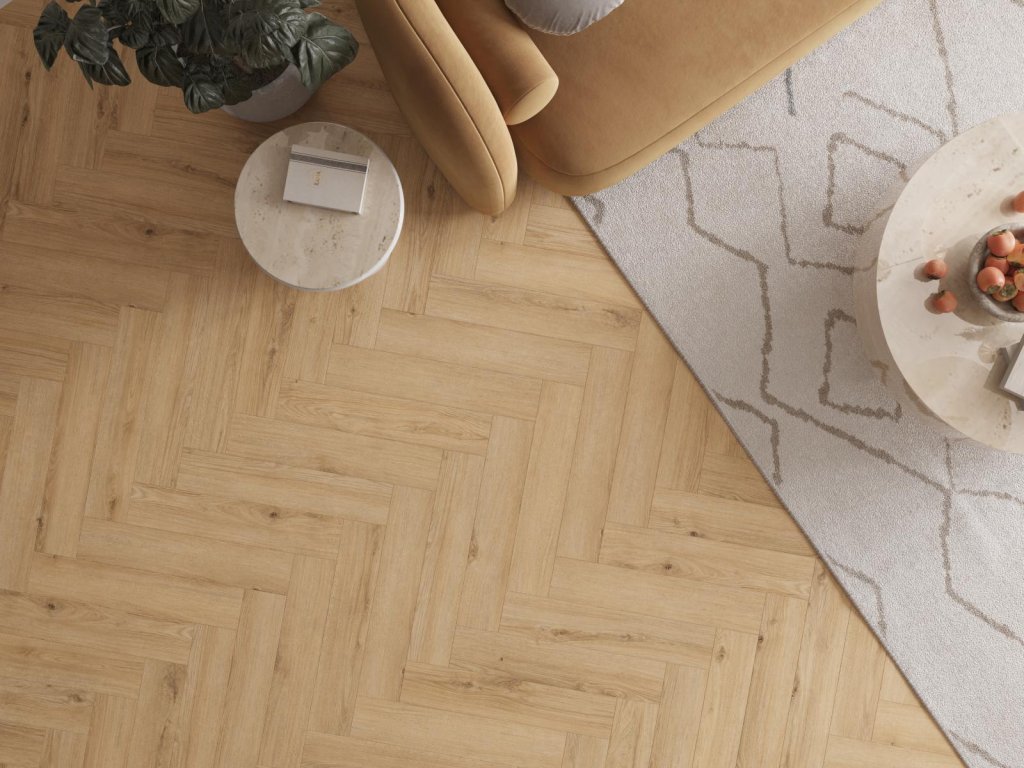Kolekcia Classen Ville 4V Herringbone predstavuje vodoodolnú laminátovú podlahu s lamelami rozmeru 643 × 131 mm a hrúbkou 8 mm, ktorá prináša stabilnú a pevne položenú plochu vhodnú do bytových aj komerčných priestorov.