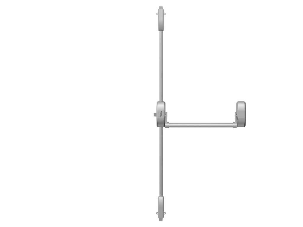 Jednokrídlové dvere s trojbodovým zaistením D1/1B -1H-1D – 1-bod horizontálne uzamykanie,2 body vertikálne uzamykanie, je nutné použiť samozatvárač a sú určené pre protipožiarne a dymotesné dvere. Podľa šírky dverného krídla a maximálnej výšky si môžete vybrať z nižšie uvedených setov: 1. set D1/1B-1H-1D pre šírku dverného krídla do 1 000 mm s max. výškou 2 270 mm obsahuje: PHA 2102 F - 1-bodové zaistenie PHA 2104 - paniková tyč 830 mm PHX 04 F - set závory s krytom pre krídlo dverí s výškou do 2 270 mm PHX 03 F - horné a dolné zaistenie 2. set D1/1B-1H-1D pre šírku dverného krídla do 1 300 mm s max. výškou 2 270 mm obsahuje: PHA 2102 F - 1-bodové zaistenie PHA 2105 - paniková tyč 1 130 mm PHX 04 F - set závory s krytom pre krídlo dverí s výškou do 2 270 mm PHX 03 F - horné a dolné zaistenie 3. set D1/1B-1H-1D pre šírku dverného krídla do 1 000 mm s max. výškou 3 400 mm obsahuje: PHA 2102 F - 1-bodové zaistenie PHA 2104 - paniková tyč 830 mm PHX 05 F - set závory s krytom pre krídlo dverí s výškou do 3 400 mm PHX 03 F - horné a dolné zaistenie 4. set D1/1B-1H-1D pre šírku dverného krídla do 1 300 mm s max. výškou 3 400 mm obsahuje: PHA 2102 F - 1-bodové zaistenie PHA 2105 - paniková tyč 1 130 mm PHX 05 F - set závory s krytom pre krídlo dverí s výškou do 3 400 mm PHX 03 F - horné a dolné zaistenie Všetky komponenty majú striebornú povrchovú úpravu. POUŽITIE PANIKOVÝCH KOVANÍ: Panikové kovania umožňujú otvorenie dverí primeraným zatlačením na madlo v smere úniku a to i v prípade, že sú dvere z vonkajšej strany uzamknuté.Sú určené na použitie na dverách východov z verejných budov s vyššou frekvenciou pohybu ľudí, napr. nákupné strediská, školy, nemocnice, divadlá, kiná, úrady a pod.Tieto kovania sa montujú na dvere, ktoré sú súčasťou núdzových východov a protipožiarnych únikových ciest.Dodatočné parametre