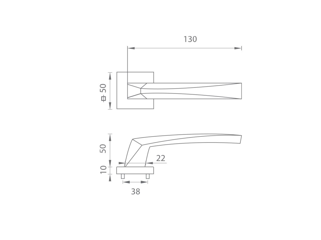 Rozetová kľučka na interiérové dvere s hranatou rozetou je vyrobená z materiálov vysokej kvality – zamak a je povrchovo upravenáRozmery rozety: 50 x 50 mmHrúbka rozety: 10 mm Kľučka z rady FORME line má patentovaný systém roziet Fixa, ktoré sú kompletne vyrobené z kovu bez akýchkoľvek plastových prvkov