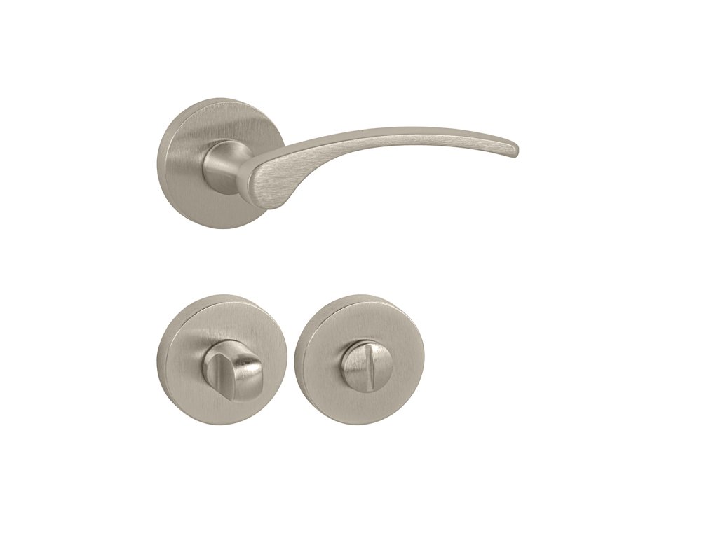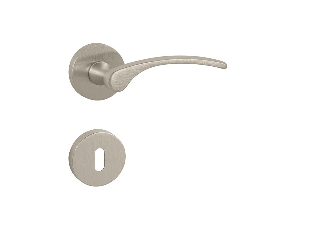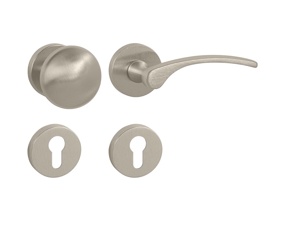 Rozetová kľučka na interiérové dvere s okrúhlou rozetou je vyrobená z materiálov vysokej kvality – zamak a je povrchovo upravená.Rozeta má priemer 50 mm a hrúbku 10 mm.