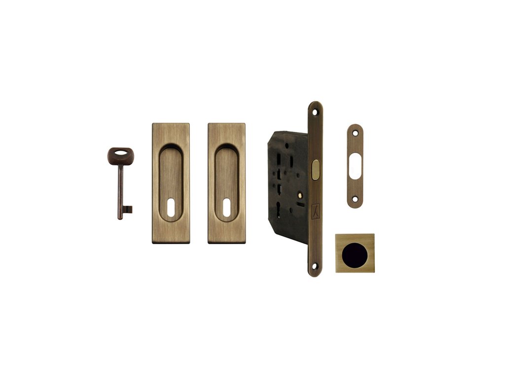 Hranatý set na posuvné dvere s otvorom pre interiérový kľúč (BB) s rozmermi čela zámku v dĺžke 160 mm, šírke 18 mm, hrúbke 2 mm. Rozteč (vzdialenosť medzi otvorom na kľučku a vložkou/kľúčom) - 70 mm , zádlab - 65 mm a dormas (vzdialenosť osi kľučky od lišty zámku) - 48 mm. Set obsahuje: zámok - FT - 60/50, pár mušlí - FT - 3663AF, madielko - FT - MQDodatočné parametre