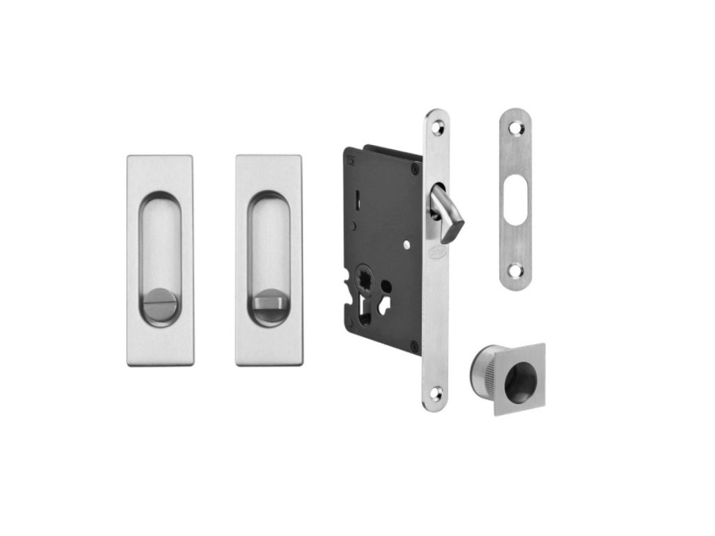 Hranatý set na posuvné dvere s WC kľúčom. Set obsahuje: zámok JNF - IN.20.915.S, pár mušlí - FT - 3663ARZ, madielko ATZ - 3919Dodatočné parametre