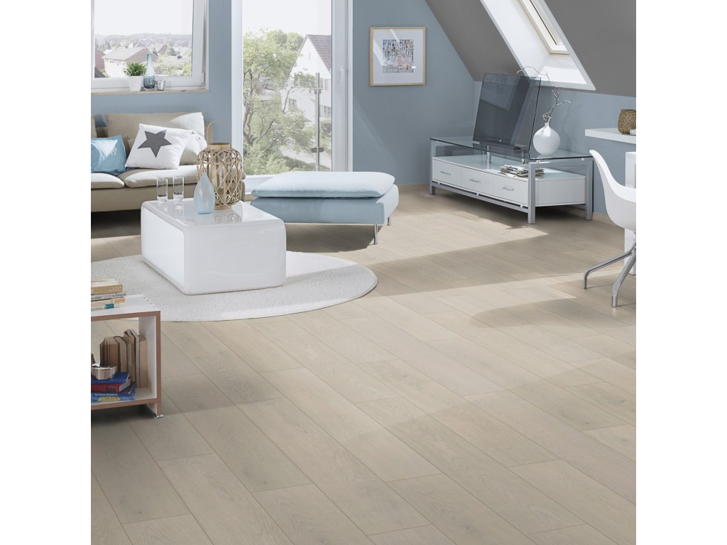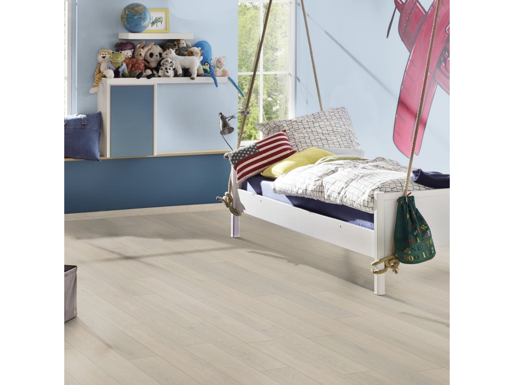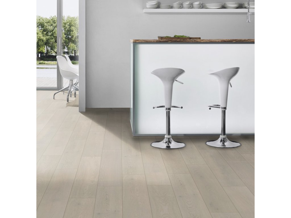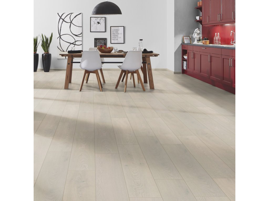 Veľkou výhodou podlahy je aj trieda odolnosti voči škrabancom a poškodeniam 33/AC5, vďaka ktorej sa nemusíte báť akýchkoľvek poškodení nábytkom, alebo viditeľnými škrabancami spôsobených posúvaním stoličiek.