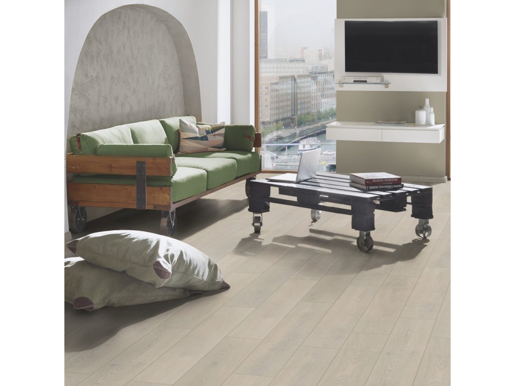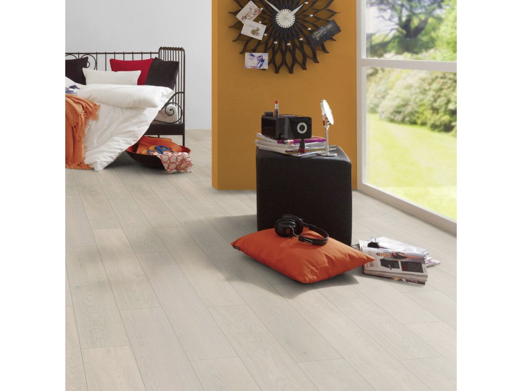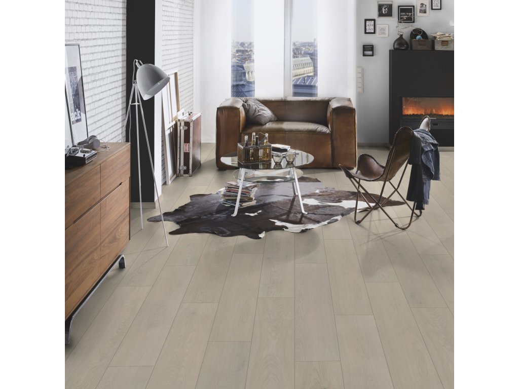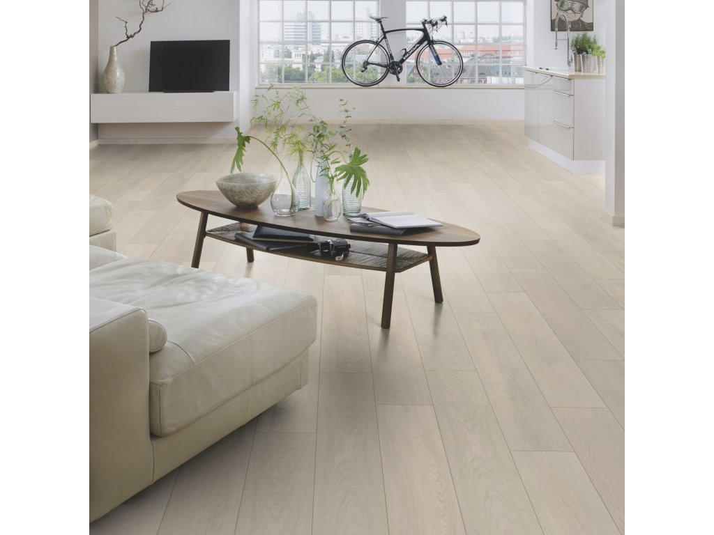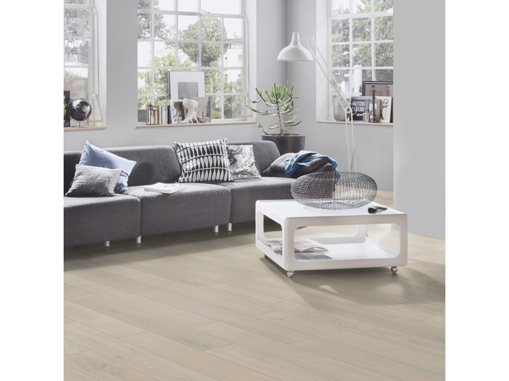 Veľkou výhodou podlahy je aj trieda odolnosti voči škrabancom a poškodeniam 33/AC5, vďaka ktorej sa nemusíte báť akýchkoľvek poškodení nábytkom, alebo viditeľnými škrabancami spôsobených posúvaním stoličiek.