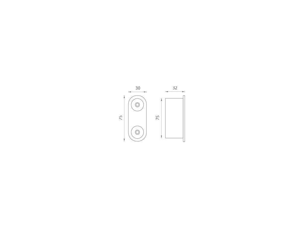 Oválne madielko do čela posuvných dverí je vyrobené z vysokokvalitnej nehrdzavejúcej ocele, známej ako nerez a z materiálov vysokej kvality – zamak a je povrchovo upravené. Oválne madielko má výšku 75 mm, šírku 30 mma zádlab 32 mm. Upevnenie samoreznou skrutkou - Súčasťou balenia sú samorezné skrutky v príslušnom počte. Cena je uvedená za kus.Dodatočné parametre