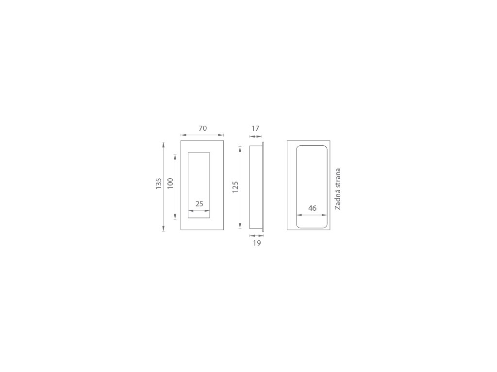 Hranatá mušľa je vyrobená z vysokokvalitnej nehrdzavejúcej ocele, známej ako nerez a je povrchovo upravená. Mušľa má výšku 135 mm, šírku 70 mm, zádlab 17 mm a celkovú hrúbku 19 mm. Montáž mušle lepením. Cena je uvedená za kus.Dodatočné parametre