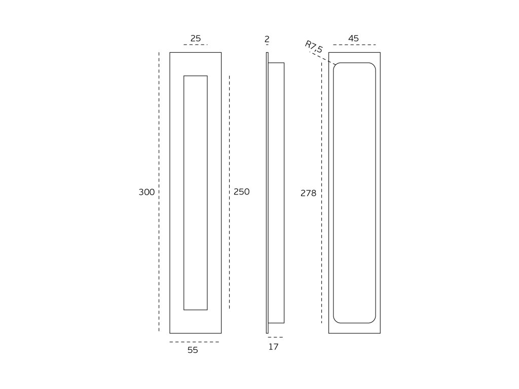Hranatá mušľa je vyrobená z vysokokvalitnej nehrdzavejúcej ocele, známej ako nerez a je povrchovo upravená. Rozmery:Výška: 300 mmŠírka: 55 mmHrúbka: 19 mmZádlab: 17 mm Montáž mušle: lepením Cena je uvedená za kus.Dodatočné parametre
