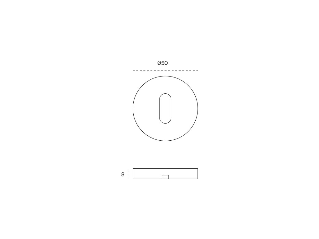 Okrúhla rozeta je vyrobená z vysokokvalitnej nehrdzavejúcej ocele, známej ako nerez a je povrchovo upravená. Priemer rozety: 50 mmHrúbka rozety: 8 mm Rozeta má oválny otvor pre interiérový kľúč (BB), V našej ponuke nájdete aj rozetu s otvorom pre cylindrickú vložku (PZ) , WC set s vmontovaným kľúčom.Dodatočné parametre