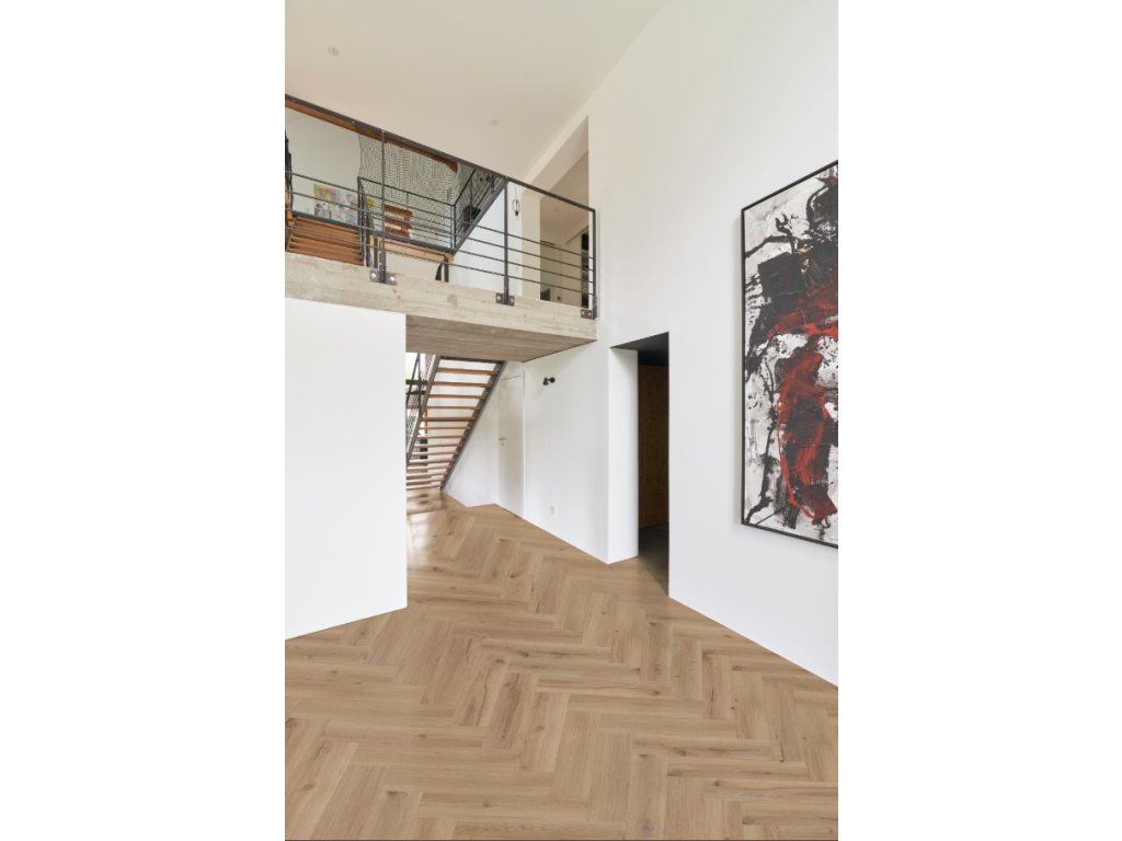Kolekcia X-CLUSIVE Herringbone v prevedení hybridných podláh prináša elegantný vzor rybej kosti v kombinácii s vysokou odolnosťou a jednoduchou montážou. Podlaha je navrhnutá s dôrazom na realistický vzhľad dreva, pričom reálna štruktúra povrchu spolu s mikro skosenými hranami 4V dodáva autentický dojem na pohľad aj na dotyk.
