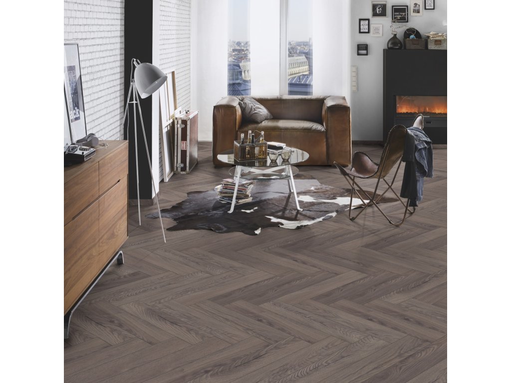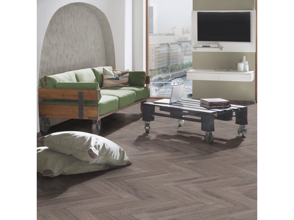 Povrchová štruktúra podláh KRONO Original Laminát Herringbone je bezpečná a dodáva podlahe dokonalý vzhľad či už dreva.