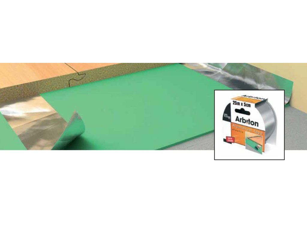 Univerzálne použiteľná hliníková páska slúži na lepenie pásov podložiek pod plávajúce podlahy a zabezpečuje ich pevné spojenie a stabilitu pred montážou plávajúcej podlahy.