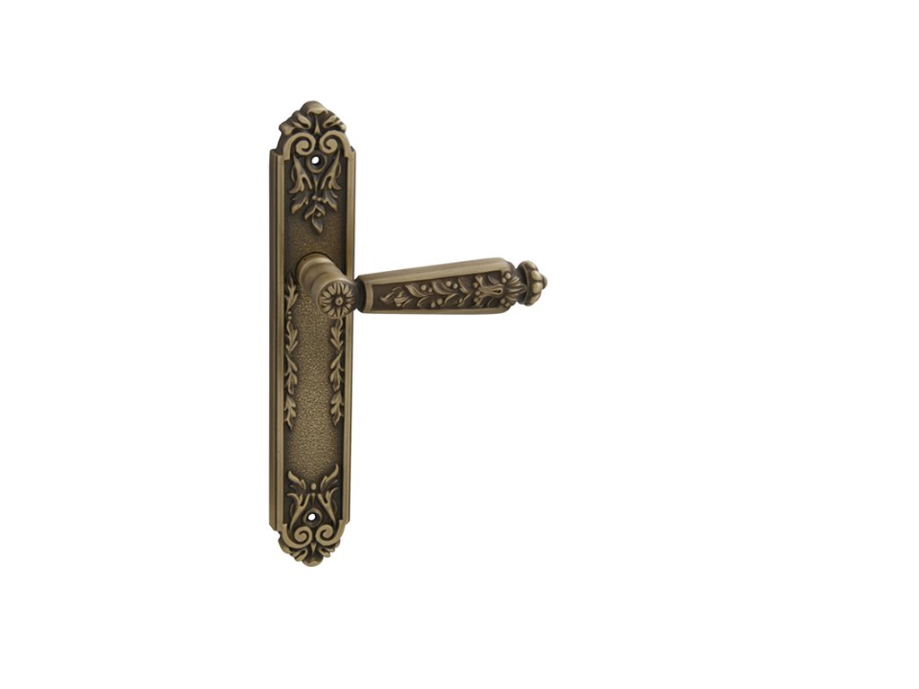 Štítová kľučka na interiérové dvere s rustikálnym štítom je vyrobená z materiálov vysokej kvality – mosadz a je povrchovo upravená.