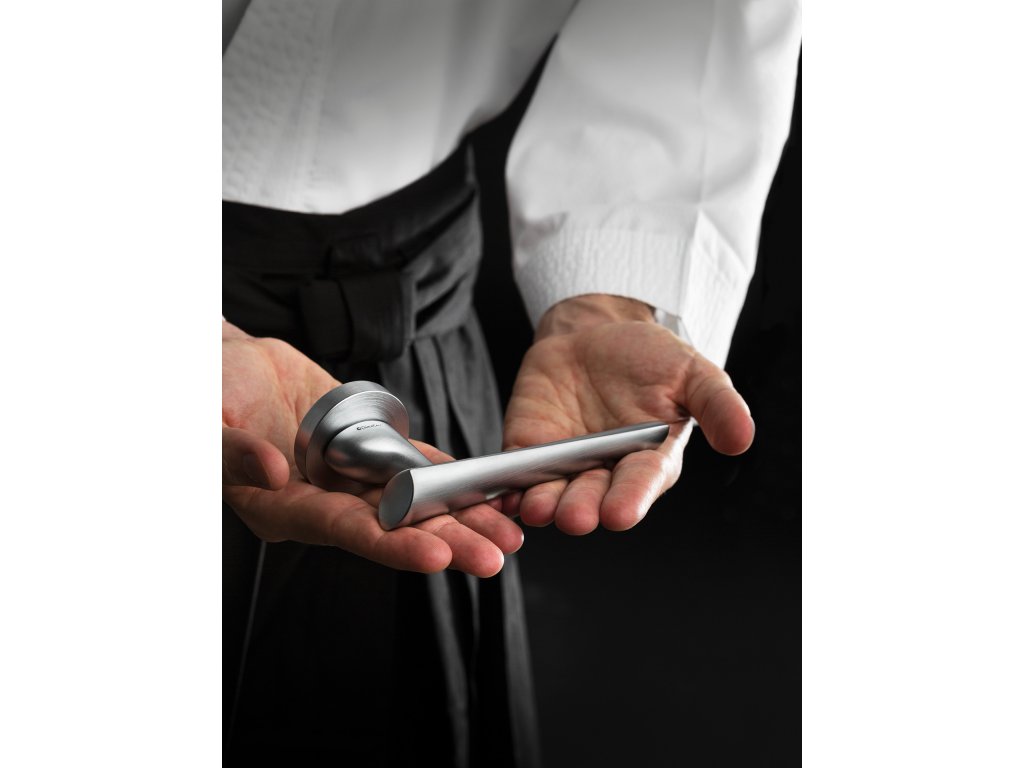 Rukoväť kľučiek v exkluzívnom prevedení z kolekcie KENDO je inšpirovaná tvarom meča Samurajov a priam pozýva ľudskú ruku, aby sa jej chopila.