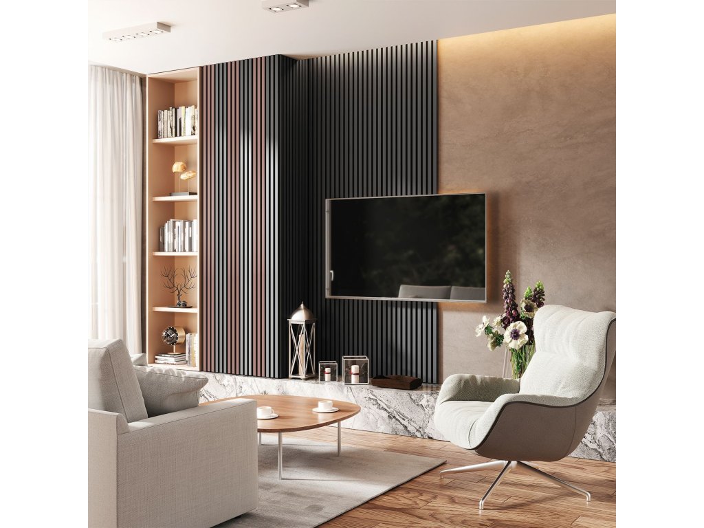 Dotyk s prírodou. Akustické obklady MEO sú vyrábané tak, že svojim vzhľadom pripomínajú prírodné materiály. MEO – exkluzívny dizajn, ktorý si môžete dopriať aj vy doma.