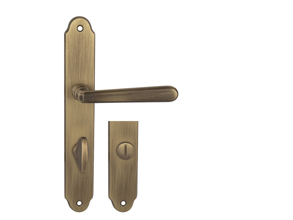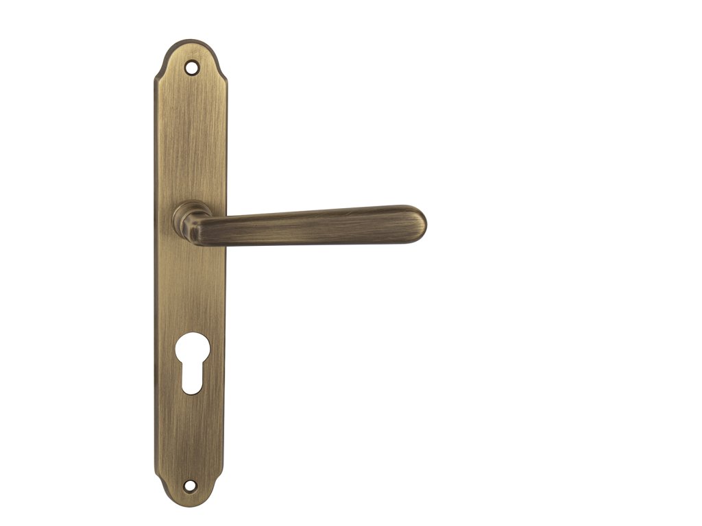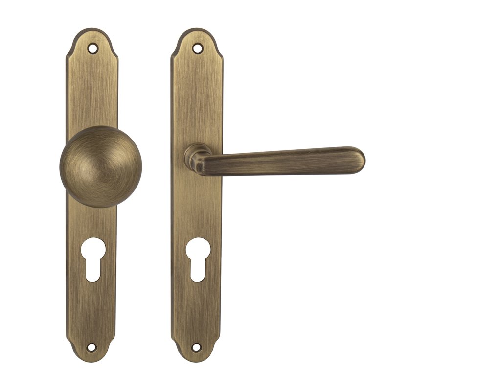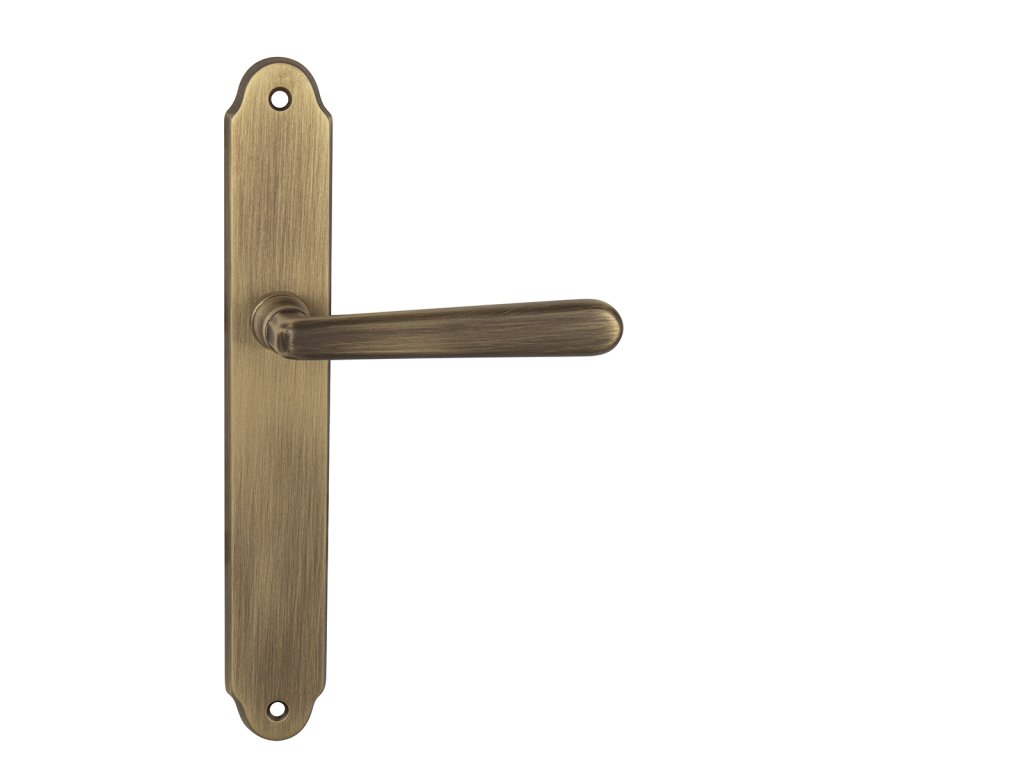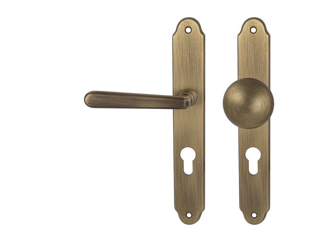 Štítová kľučka na interiérové dvere s rustikálnym štítom je vyrobená z materiálov vysokej kvality – mosadz a je povrchovo upravená.