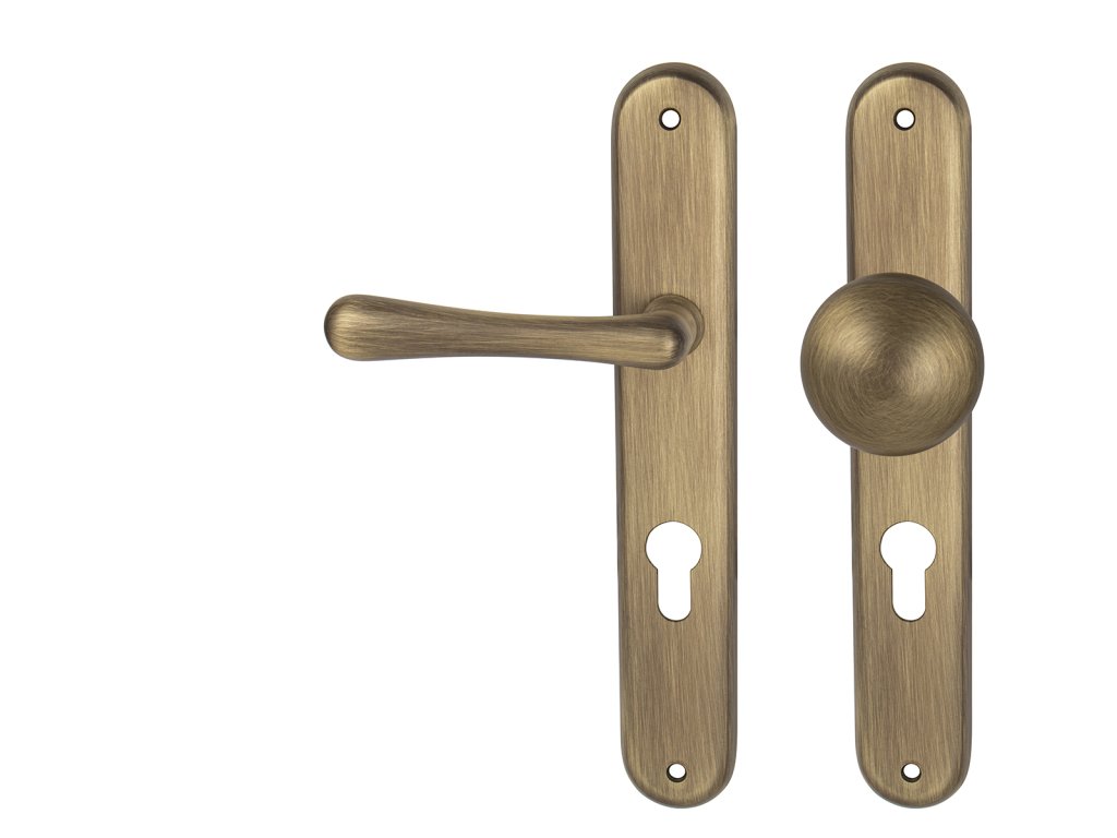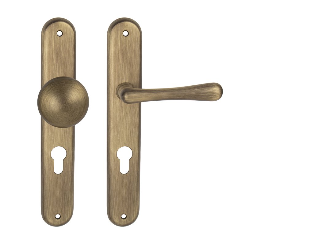 Štítová kľučka na interiérové dvere s oválnym štítom je vyrobená z materiálov vysokej kvality – mosadz/zamak a je povrchovo upravená.Rozmery štítu: 40 x 232 mm