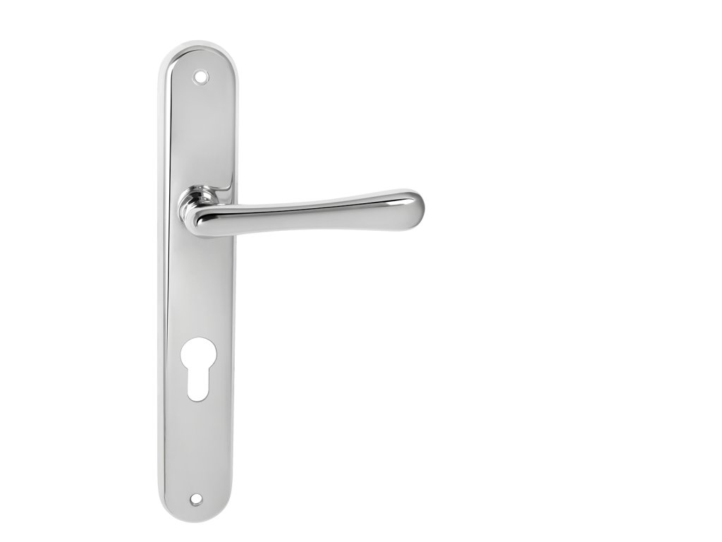 Štítová kľučka na interiérové dvere s oválnym štítom je vyrobená z materiálov vysokej kvality – mosadz/zamak a je povrchovo upravená.Rozmery štítu: 40 x 232 mm