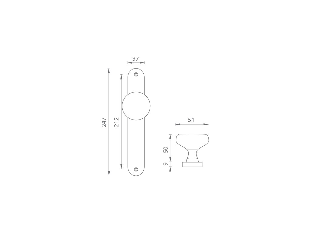 Dverová pevná priama guľa na oválnom štíte je vyrobená z materiálov vysokej kvality - mosadz a je povrchovo upravená. Guľa má priemer 51 mm a štít má rozmery 37 mm x 247 mm. Je to len na Vašom rozhodnutí, aký typ otvoru si vyberiete z našej širokej ponuky. V prípade, že sa neviete rozhodnúť, radi Vám poradíme a pomôžeme s výberom.Dodatočné parametre