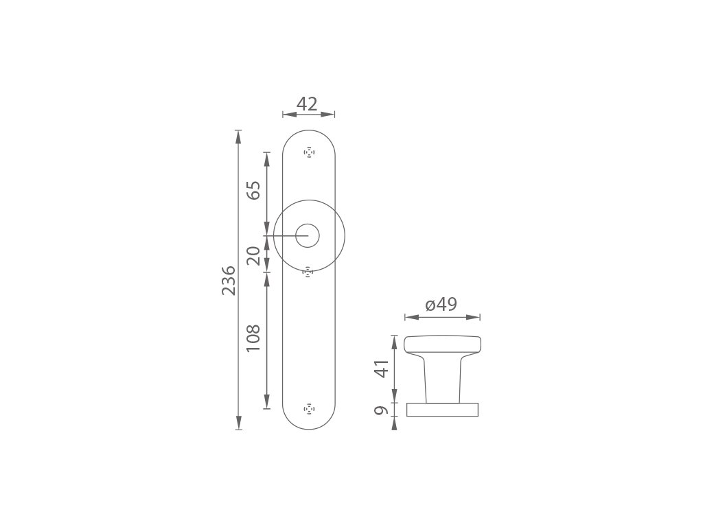 Dverová pevná priama guľa na dlhom oválnom štíte je vyrobená z vysokokvalitnej nehrdzavejúcej ocele, známej ako nerez a je povrchovo upravená. Guľa má priemer 49 mm a štít má rozmery 42 mm x 236 mm. Je to len na Vašom rozhodnutí, aký typ otvoru si vyberiete z našej širokej ponuky. V prípade, že sa neviete rozhodnúť, radi Vám poradíme a pomôžeme s výberom.Dodatočné parametre