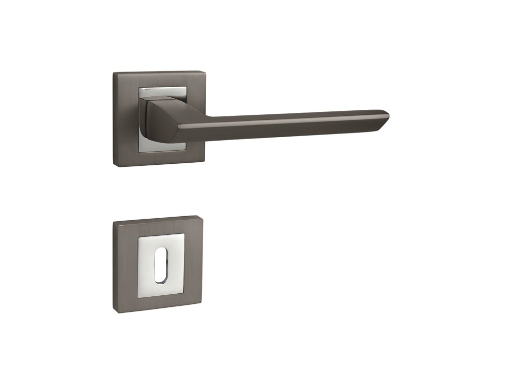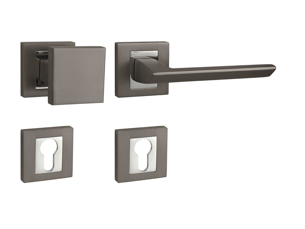 Rozetová kľučka na interiérové dvere s hranatou rozetou je vyrobená odlievaním z kvalitných zliatín zinku a hliníka a je povrchovo upravenáKľučka je povrchovo upravovaná galvanizáciou a vyznačuje sa vysokou odolnosťou proti korózii