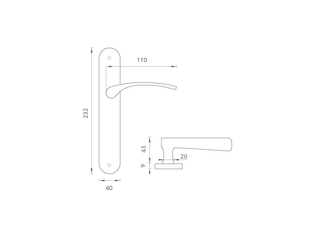Štítová kľučka na interiérové dvere s oválnym štítom je vyrobená z materiálov vysokej kvality – mosadz/zamak a je povrchovo upravená.Rozmery štítu: 40 x 232 mm
