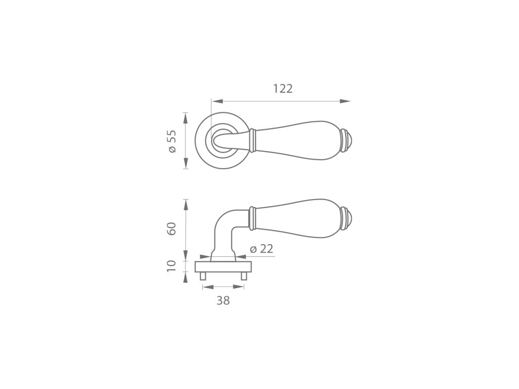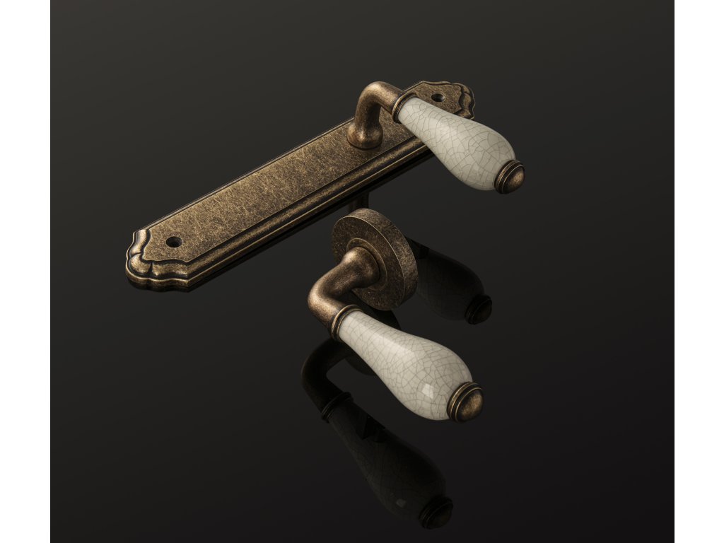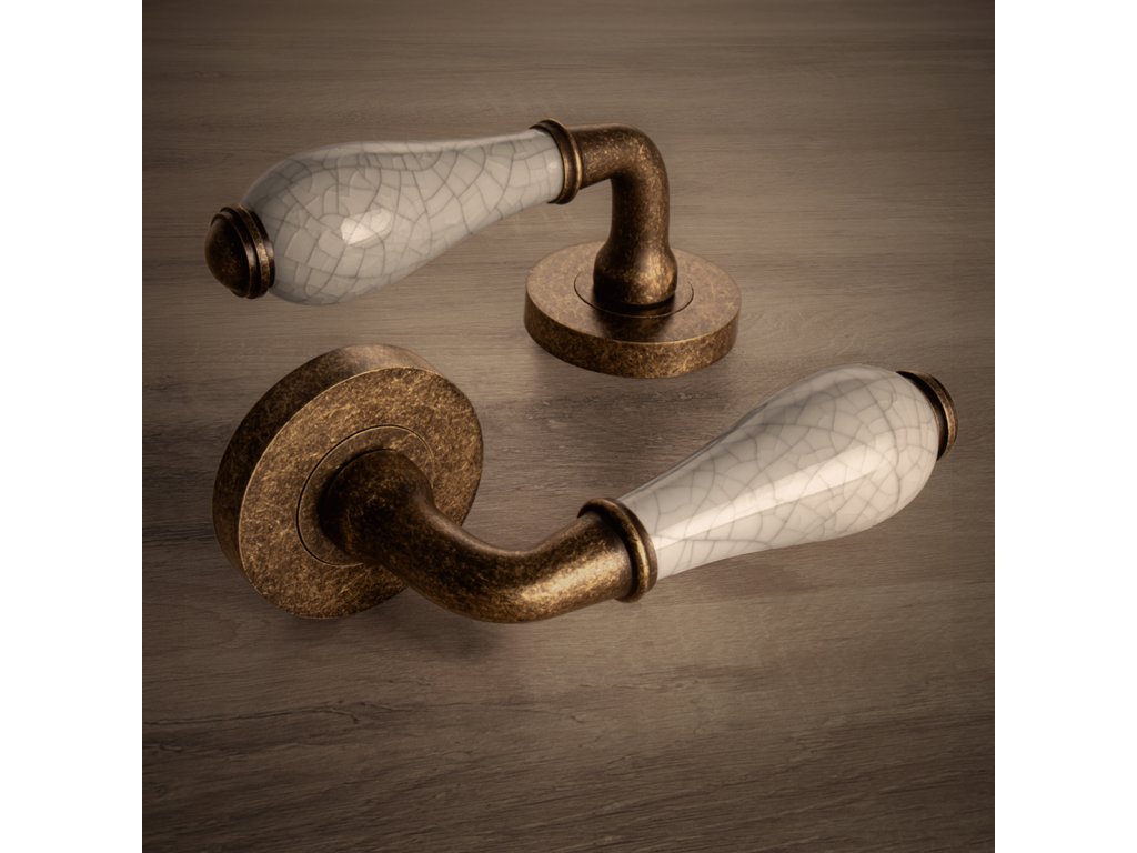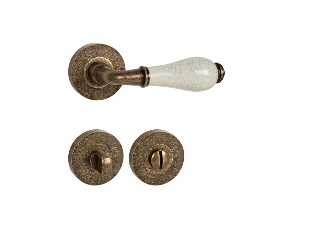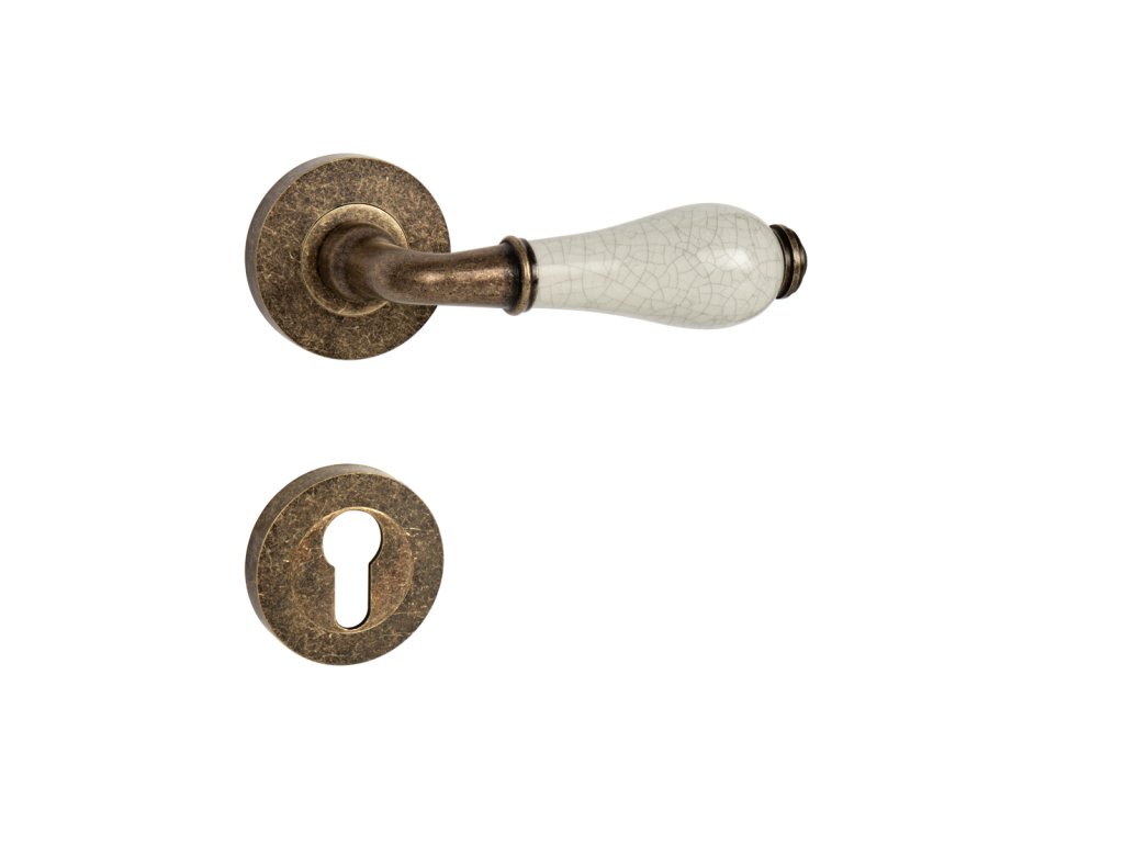 Rozetová kľučka na interiérové dvere s okrúhlou rozetou je vyrobená odlievaním z kvalitnej zliatiny zinku v kombinácii s keramikou a je povrchovo upravená.Priemer rozety: 55 mm