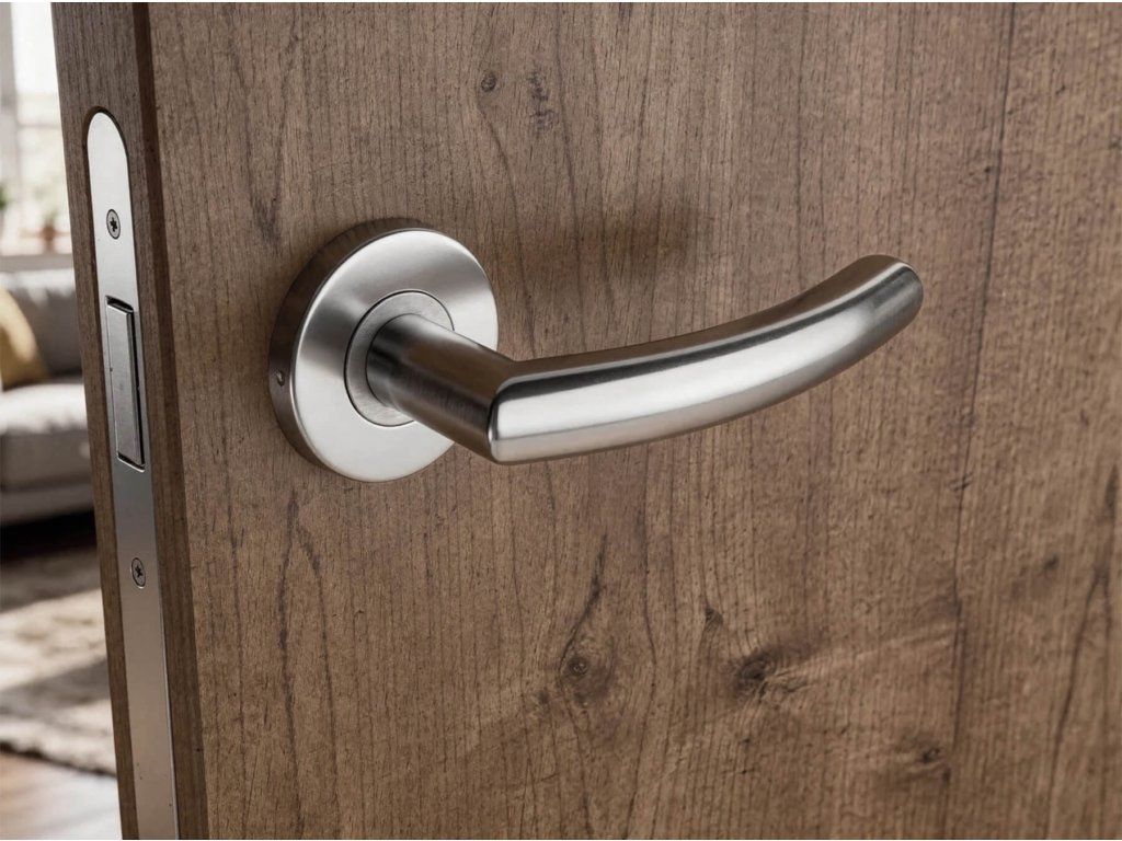Rozetová kľučka na interiérové dvere s okrúhlou rozetou z vysokokvalitnej nehrdzavejúcej ocele, známej ako nerez a je povrchovo upravená.Rozeta má priemer 54 mm a hrúbku 9 mm.