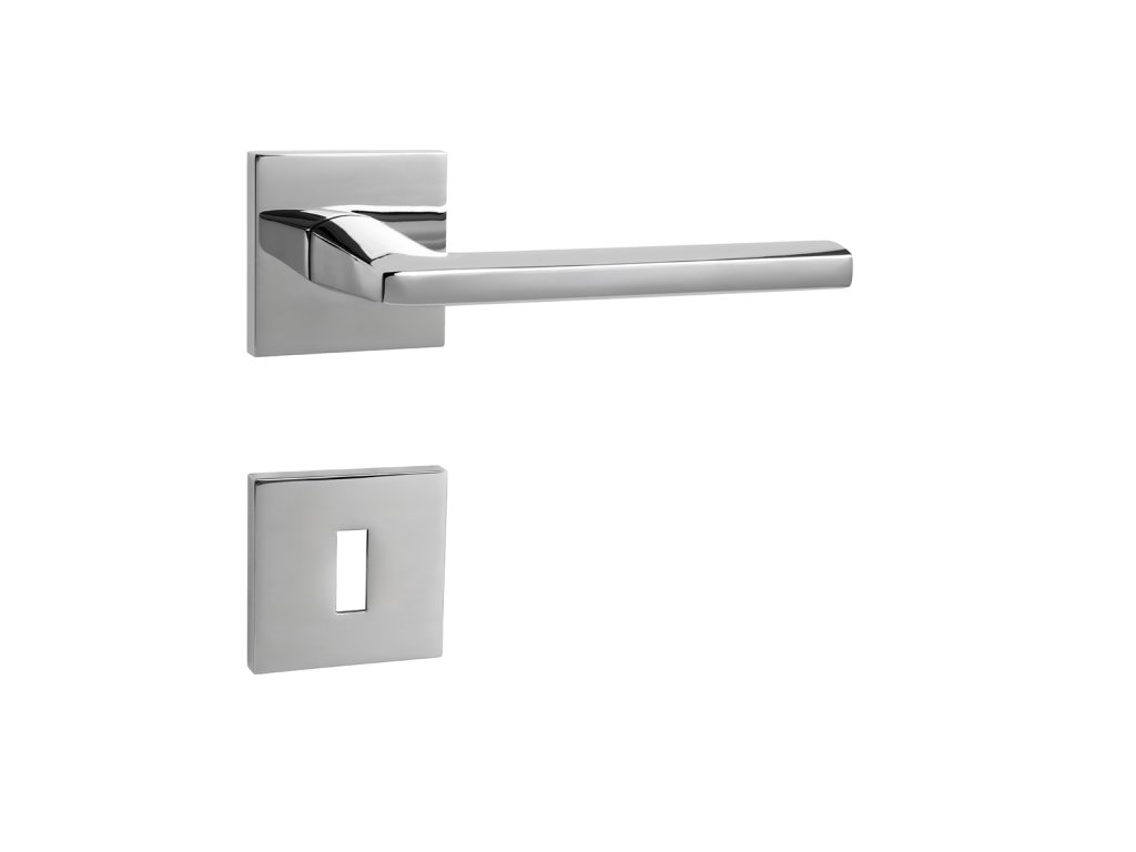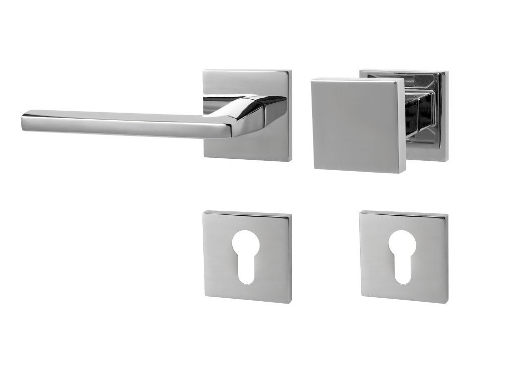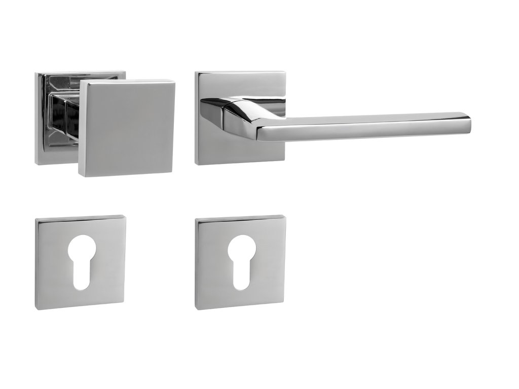 Rozetová kľučka na interiérové dvere s hranatou rozetou je vyrobená z materiálov vysokej kvality- zamak a je povrchovo upravená